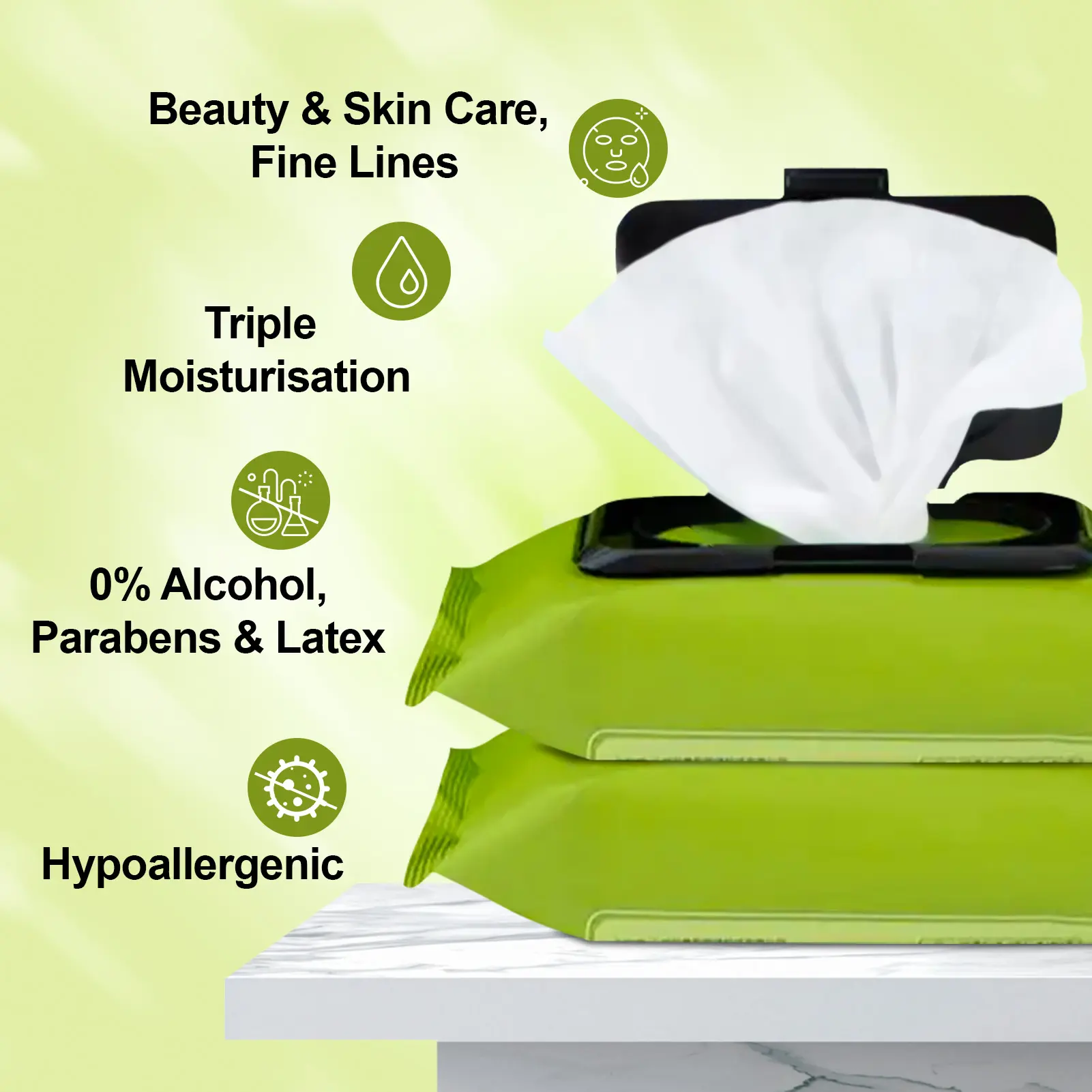 ·Biodegradable and Plant-Based:Composed of plant-derived fibers, these wipes are biodegradable and come in recyclable packaging for environmentally conscious consumers.