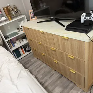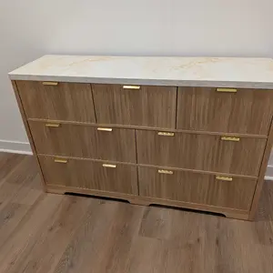 ·Sturdy & Durable Bedroom Dresser: Made of high-quality MDF board, this wood dresser is built to last. Featuring a reinforced base with a weight capacity of up to 200 lbs, it ensures exceptional stability. All drawers are designed with upgraded rails which are smoother and super easy to pull out. The faux marble top is made of melamine veneer, waterproof, and easy to clean. Such premium and chic dresser not only with timeless aesthetics but also durable and can be used for decades.