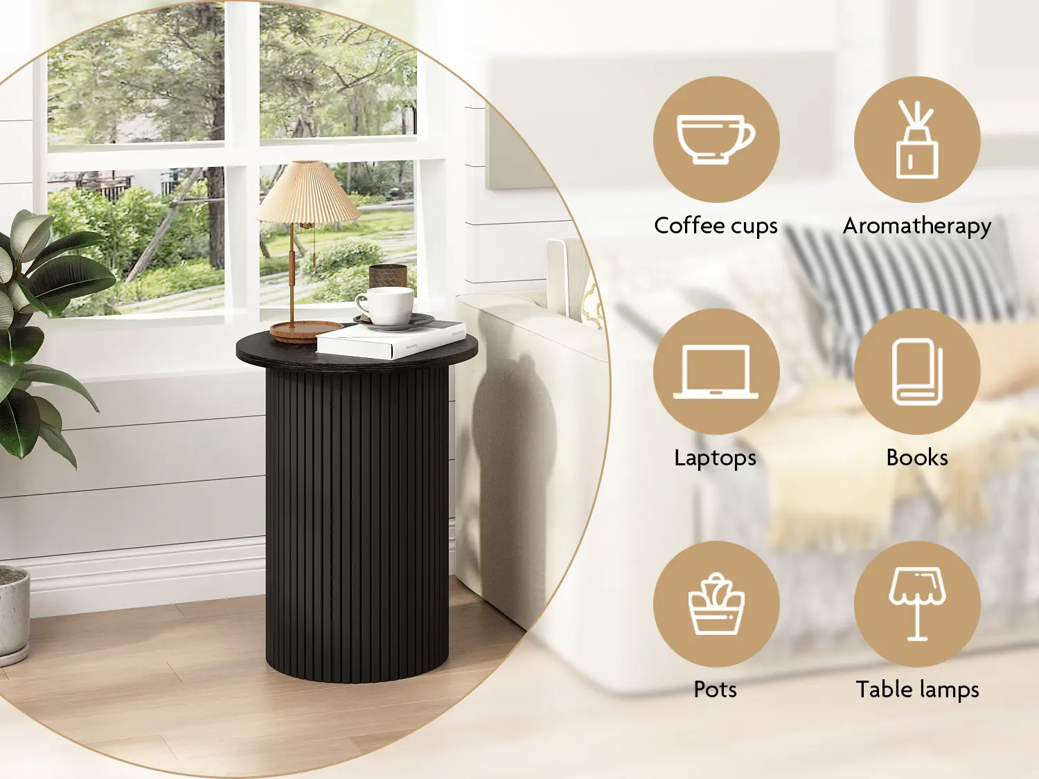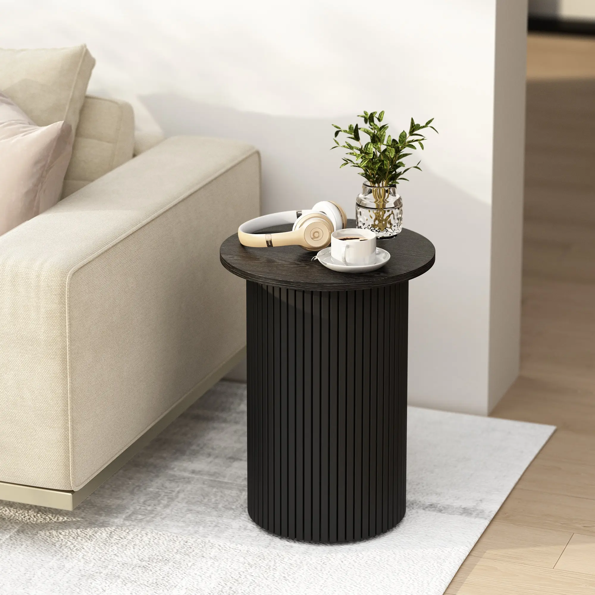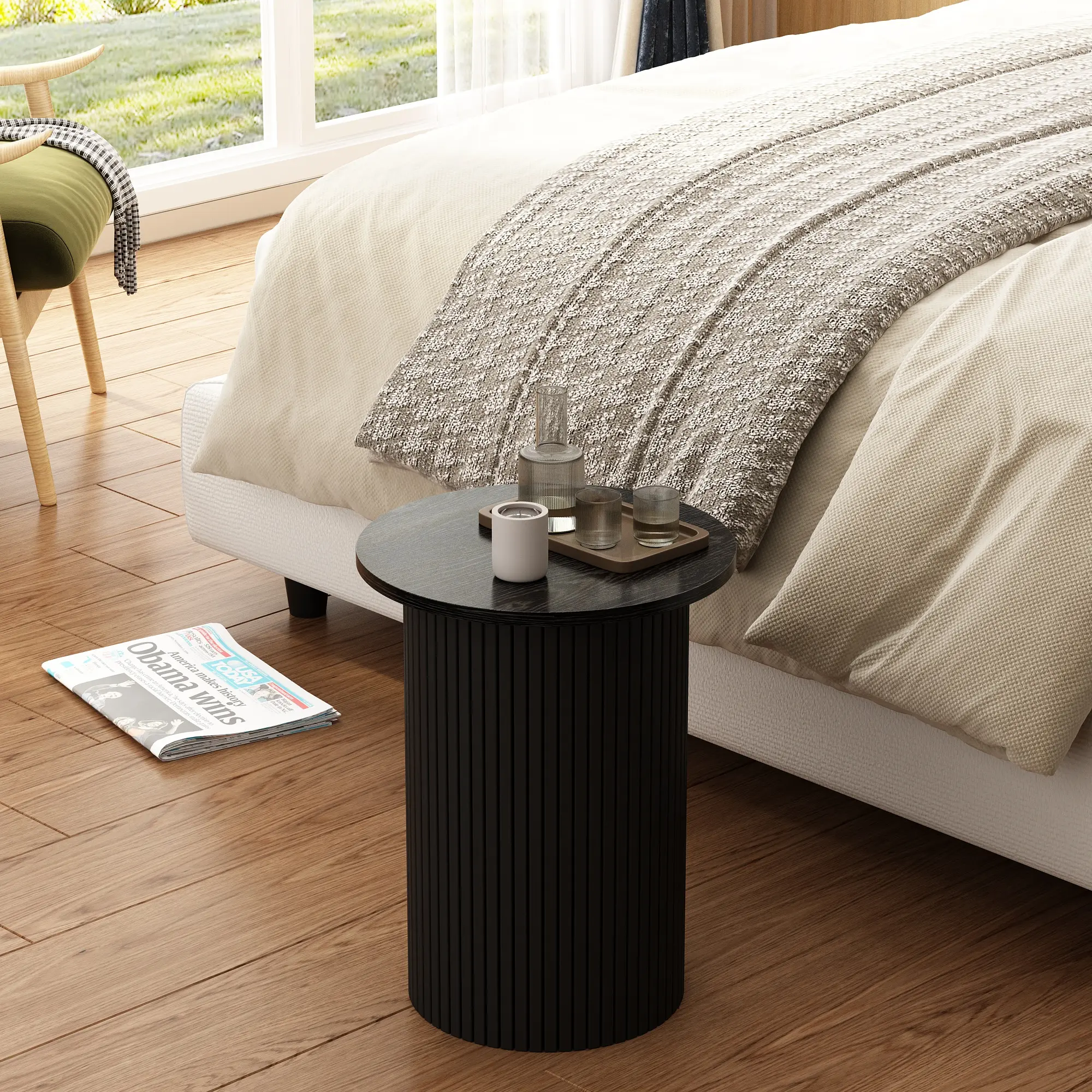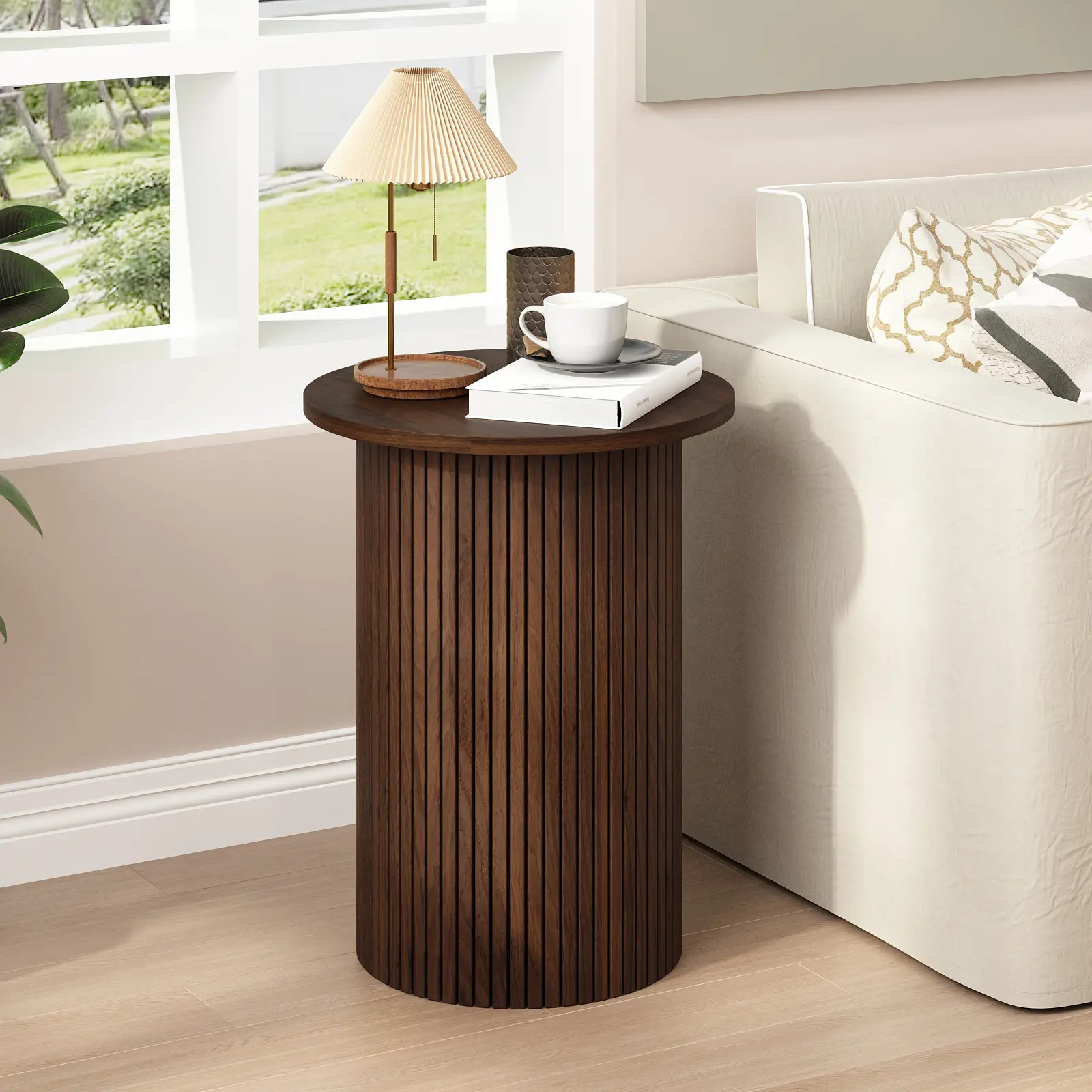 PieDle Round Fluted End Table,Small Accent Pedestal Side Table, Wood Fluted Nightstand Bedside Table for Living Room, Bedroom, Handcrafted Finish, Natural