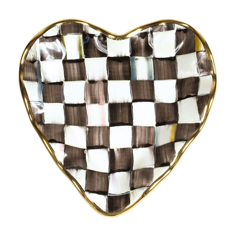 Every tasty tidbit is served with love when you use this heart-shaped dish at your next soiree. In between gatherings, it makes an eye-catching conversation piece for a coffee or end table, thanks to its checkered design and gold lustre accents. From MacKenzie-Childs.