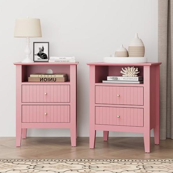 γAmple Storageγ With two spacious drawers, this fluted nightstand provides room for books, diaries and personal belongings. The tabletop and semi-open shelf are perfect for displaying decor like plants, photos, lamps, or scented candles, creating a warm and personalized ambiance.