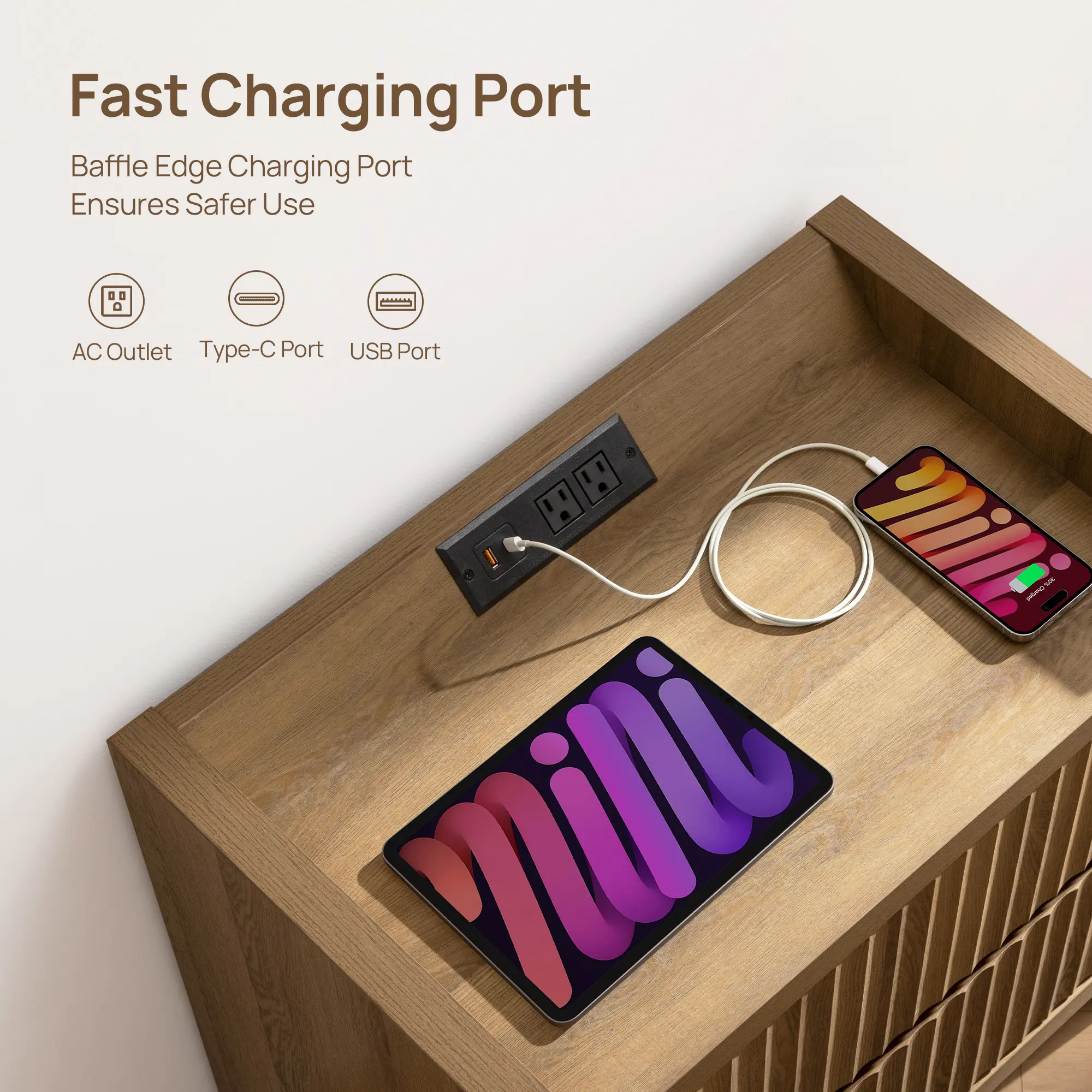 ·【Convenient Night Stand with Charging Station】- Don’t worry about low battery again! Our farmhouse large nightstands with a built-in charger station in the raised edge baffle, featuring both AC outlets and USB ports allow you to charge your phone, tablet, or other devices right at your bedside. No more searching for outlets.