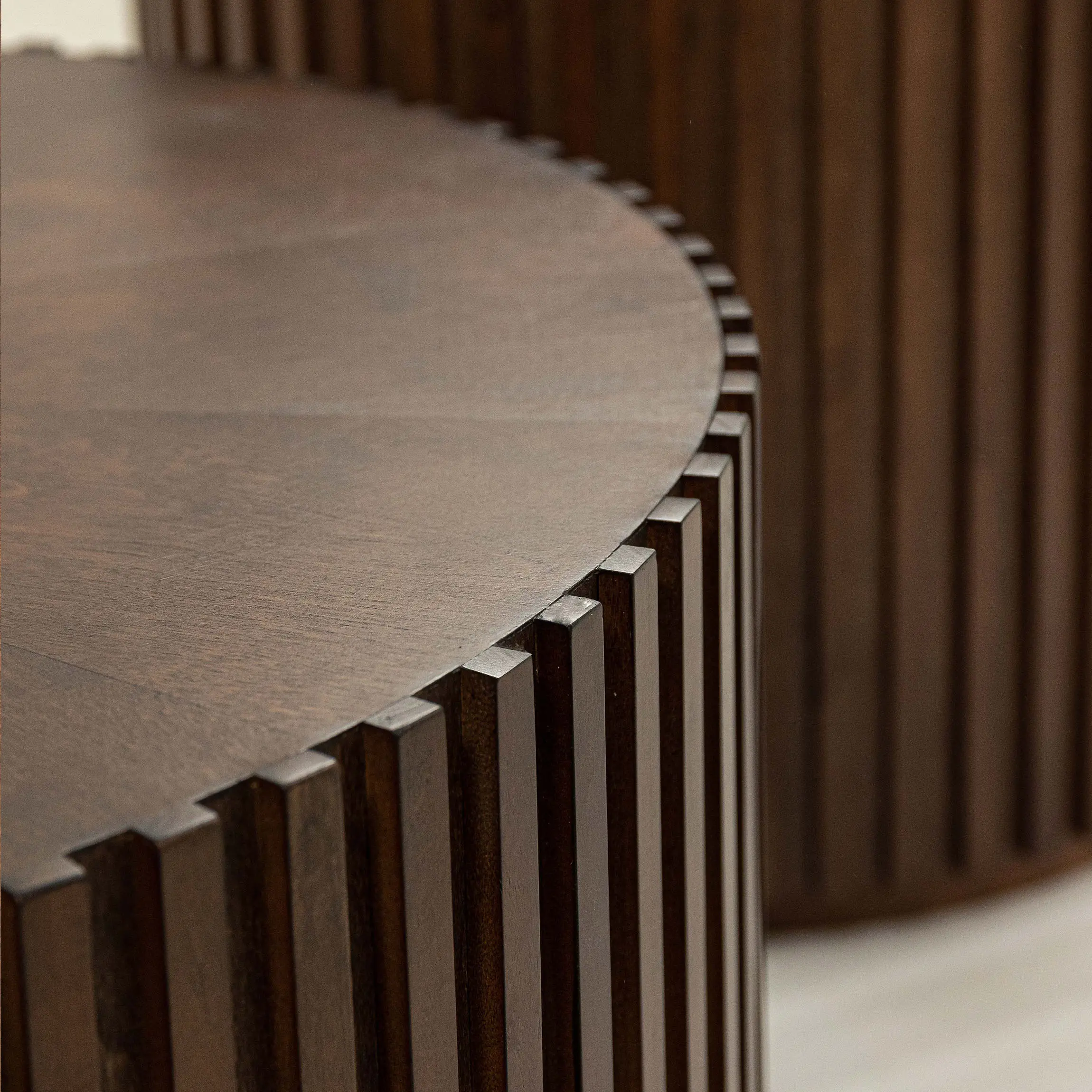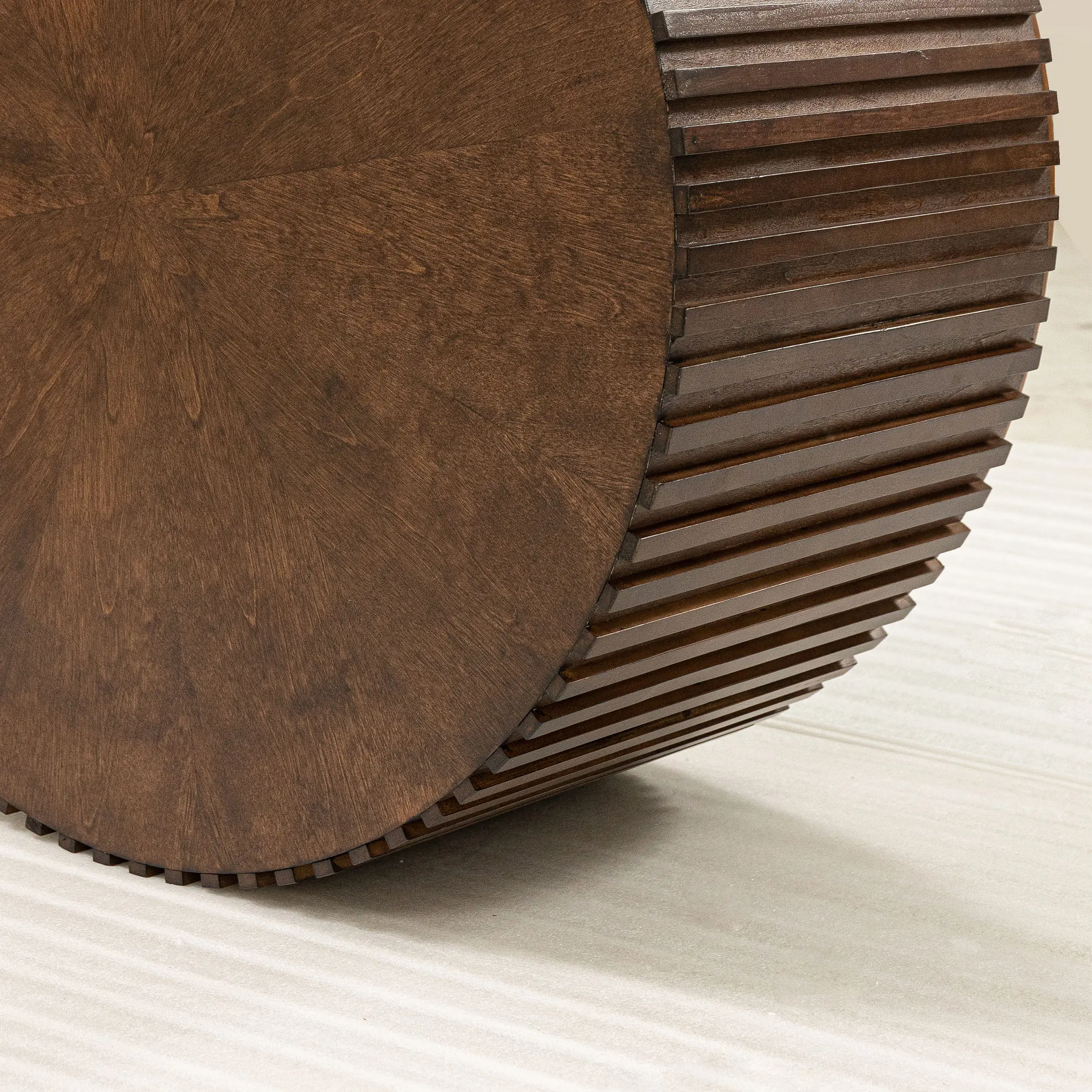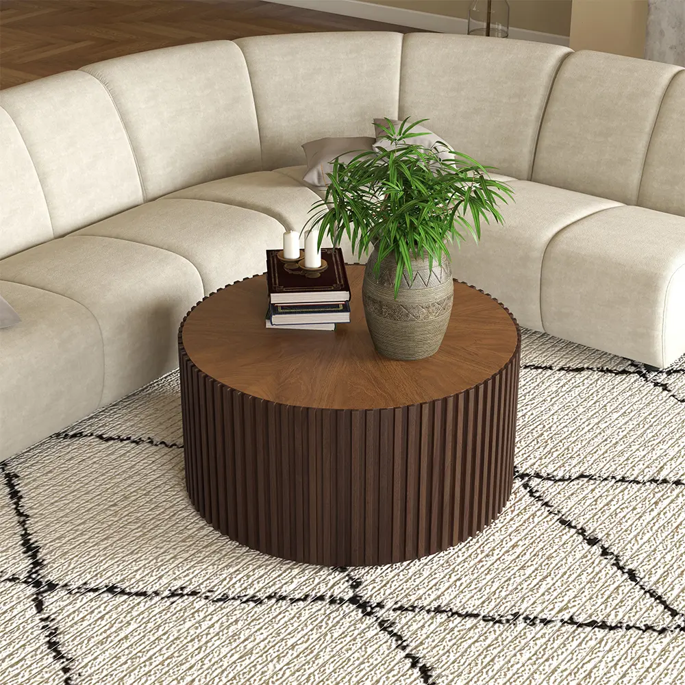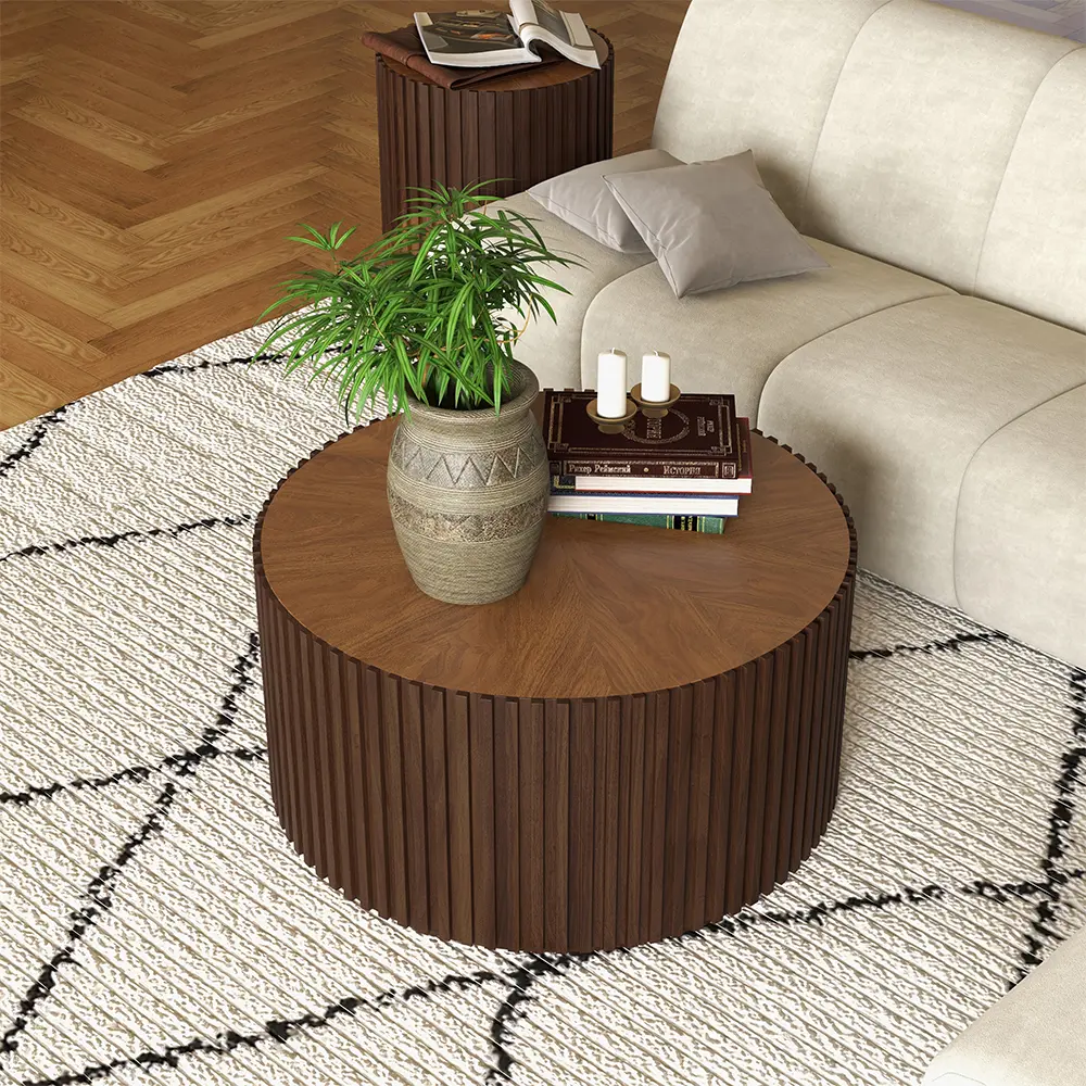 Mid-Century Modern Minimalist Coffee Table - Fluted Round Design, 31.5" Durable Poplar Wood, Fully Assembled, Opulent Walnut Color Palette