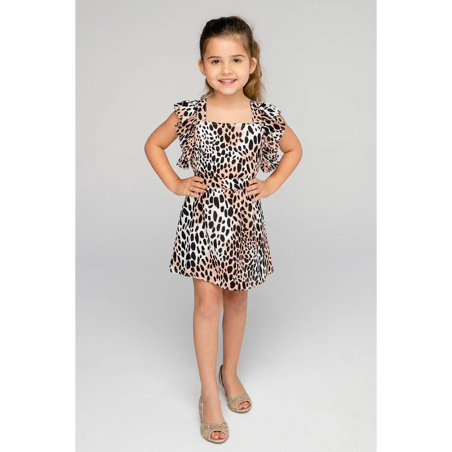 5. Shiloh Girl's Flutter Sleeve Dress - Cheetah