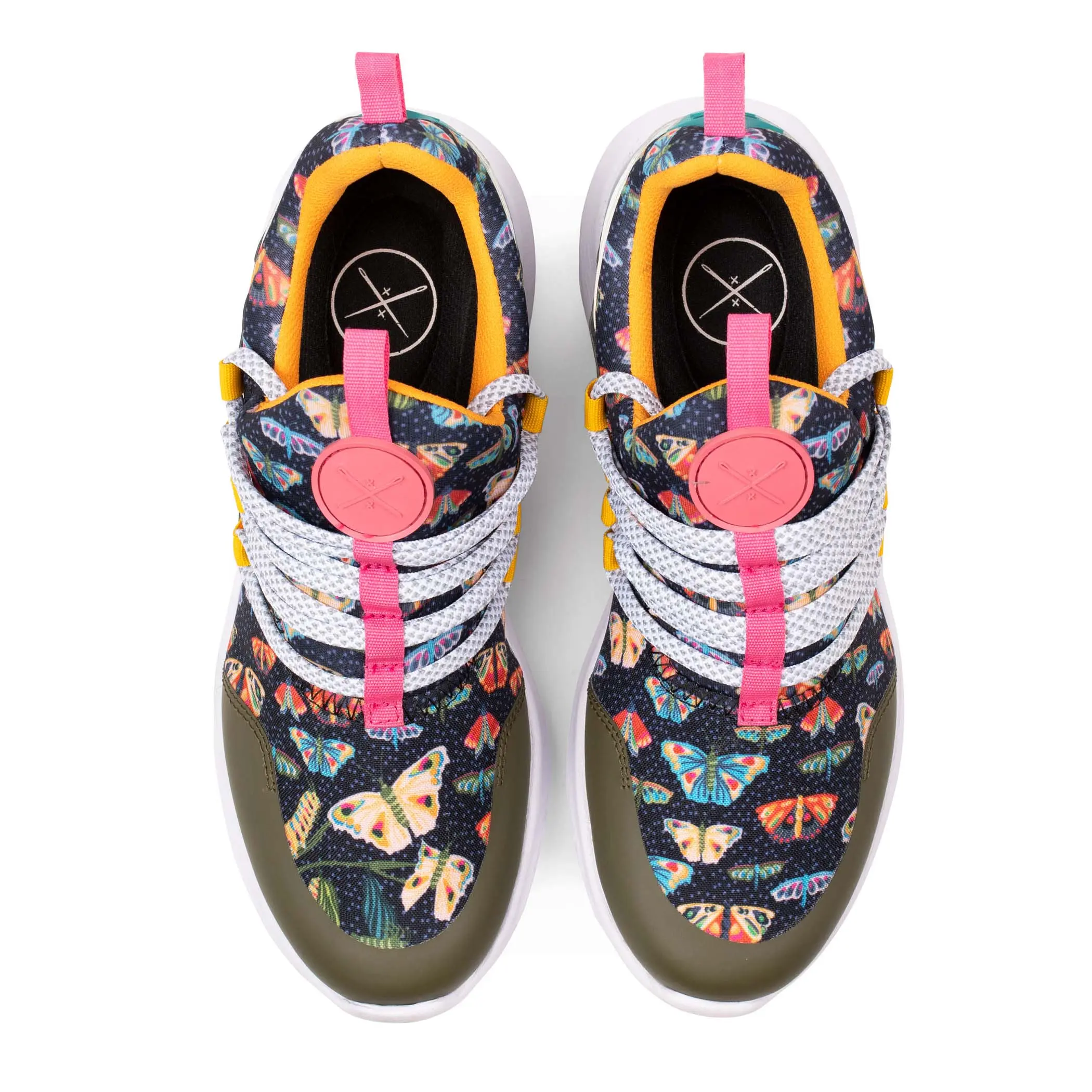 Just as the butterfly has a way of catching your eye anytime it flutters by, these artful Runners will delight your senses with their lightweight, colorful and magnetic qualities. Featuring shades of teal and pink, which pop against the dark background, this design also depicts the butterfly metamorphosis -- a mesmerizing fact of mother nature. These kicks say it all: Mother nature is wondrous. #inkkas #smallbusiness #smallbatch #sustainablefootwear #sustainable #runners #fyp #graphicdesign #butterfly