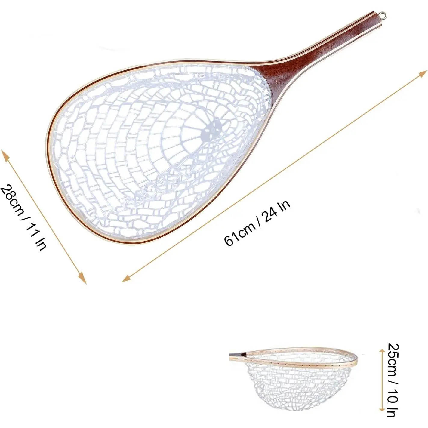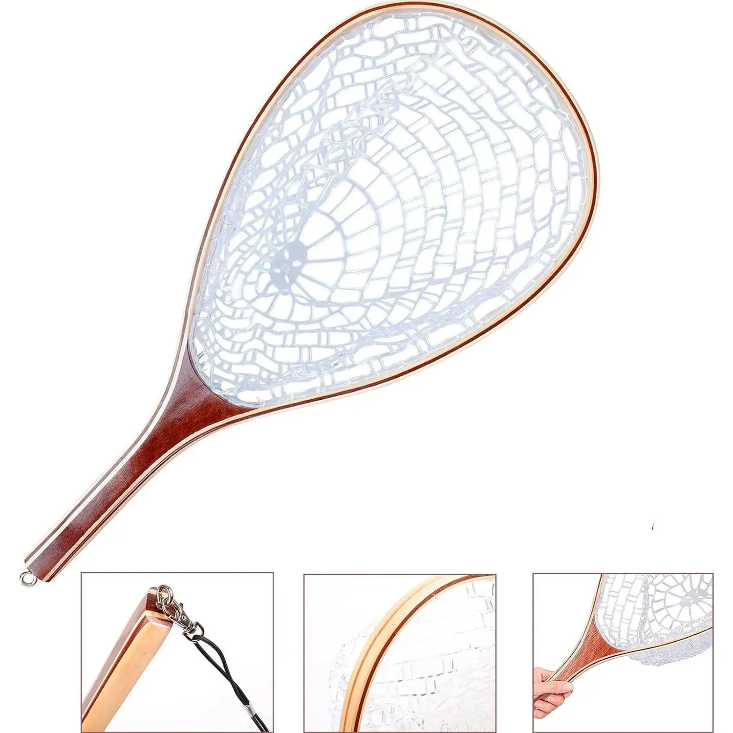 ·Wooden Frame Fishing Net: Constructed with a sturdy wooden frame, this landing net combines both aesthetics and functionality. The natural wood finish not only looks appealing but also provides durability, ensuring that the net withstands the rigors of frequent use while maintaining its integrity over time