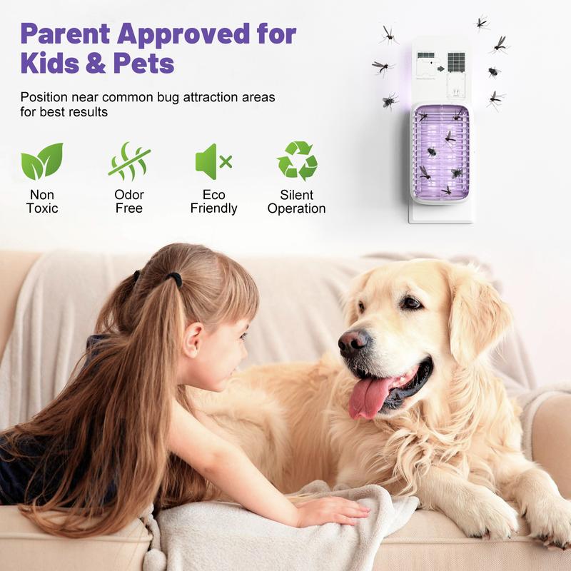 Silent Mosquito Killer: Unlike electric shockers, sticky boards can catch flying insects without worrying about odor. This fly trap is a pest control device and does not contain active insecticides. Unlike ordinary insect traps, this small moth trap can protect your eyes from direct ultraviolet light. 5 sticky boards are included in the package for easy replacement.