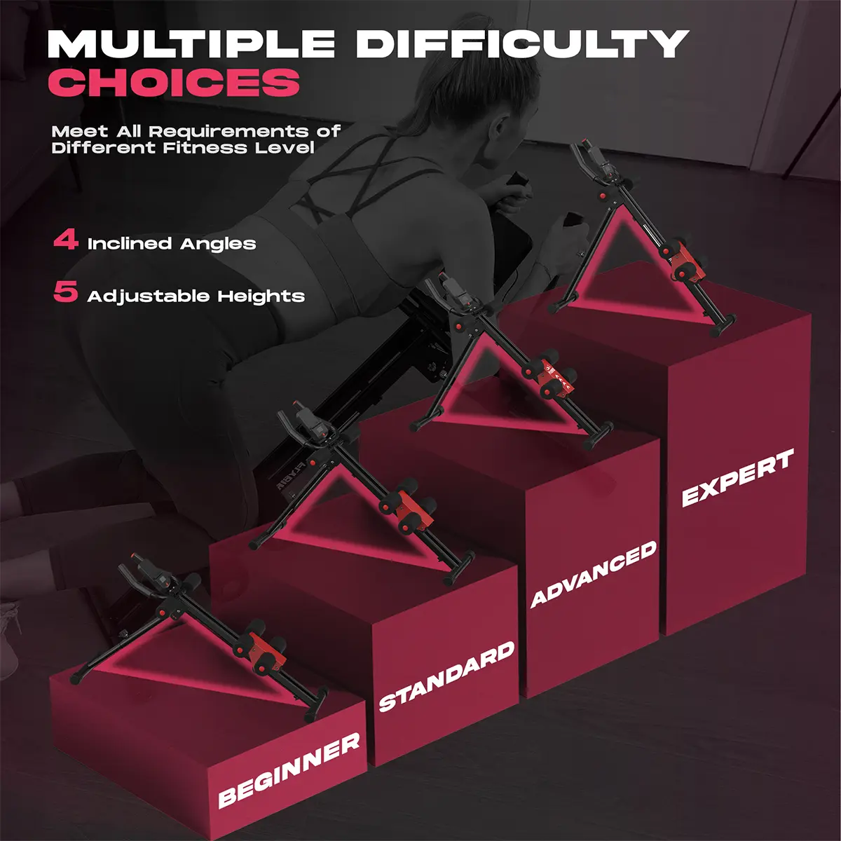 ·【From Beginner to Expert】4 Inclined Angle & 5 Adjustable Heights are paired to combine different slopes, you can easily customize your workout intensity by adjusting the incline angles. Whether you're a novice or an experienced fitness professional, the multiple difficulty choices can meet the requirements of different fitness levels, allowing you to exercise progressively.