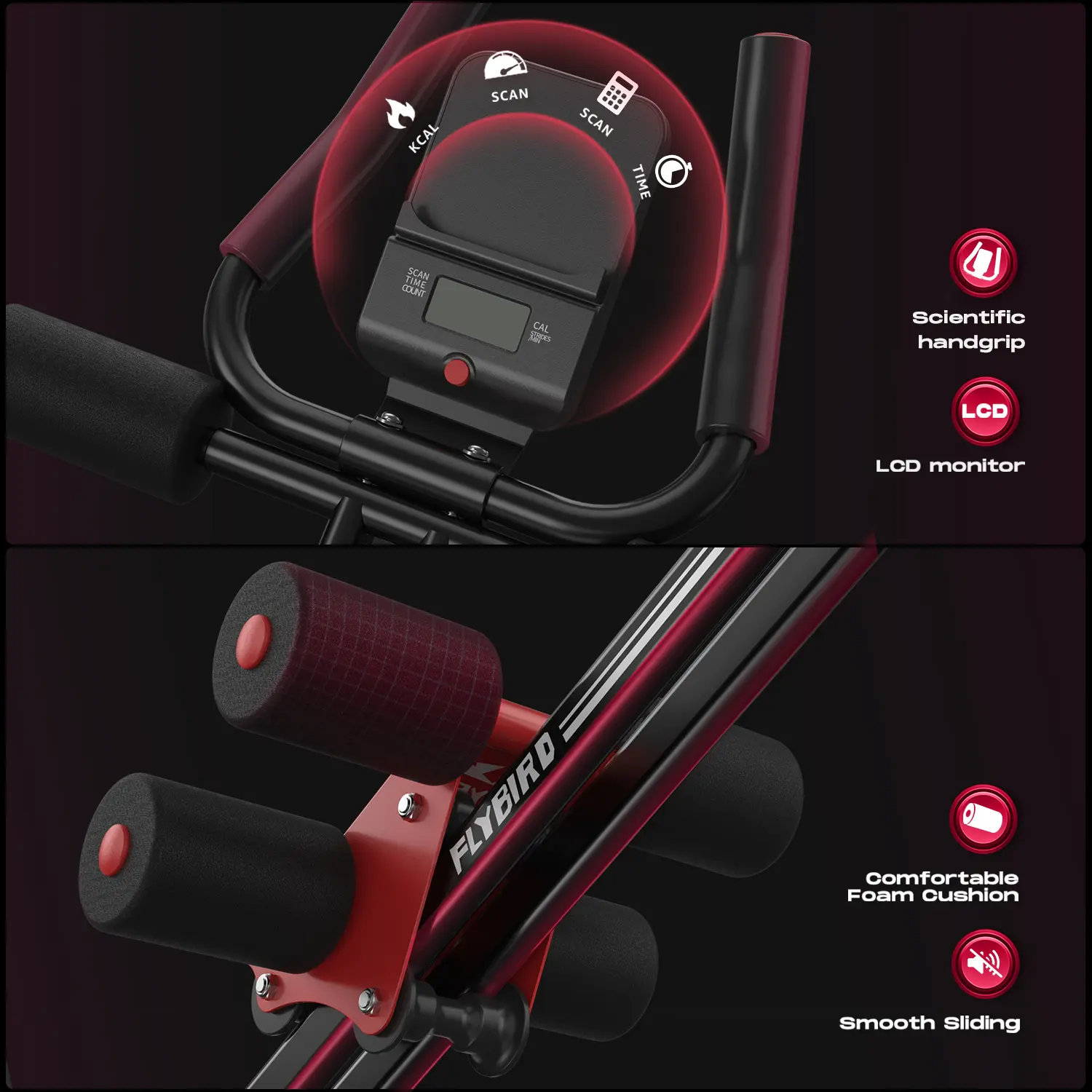 ·【SMOOTH SLIDING EXPERIENCE】The high-quality built-in wheels provide a smoother and quieter sliding experience without disturbing others. 1.18-inch thickened foam cushion and Non-slip streamline handgrips deliver a comfortable workout experience and caring protection for the knees and elbows.