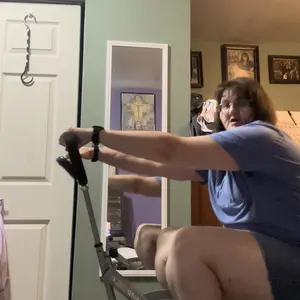 Combines squats and rowing exercises to target your legs, glutes, core, and upper body—perfect for strength training and overall muscle toning without leaving home.