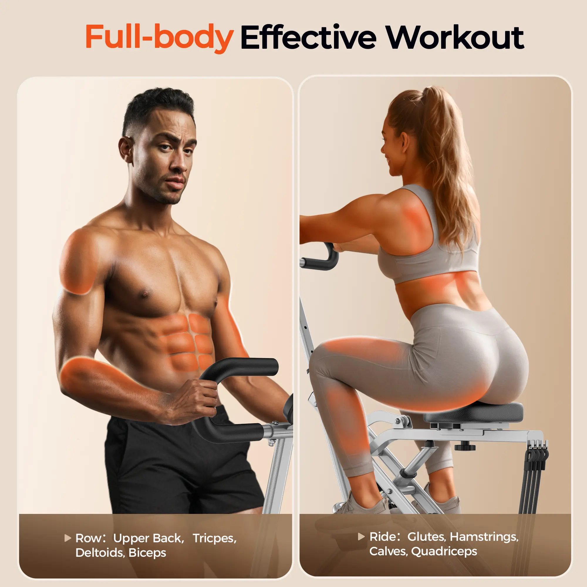 【Full Body Workout】The Squat Machine combines the features of the Row & Ride, making it the ideal for cardio strength training and muscle building.