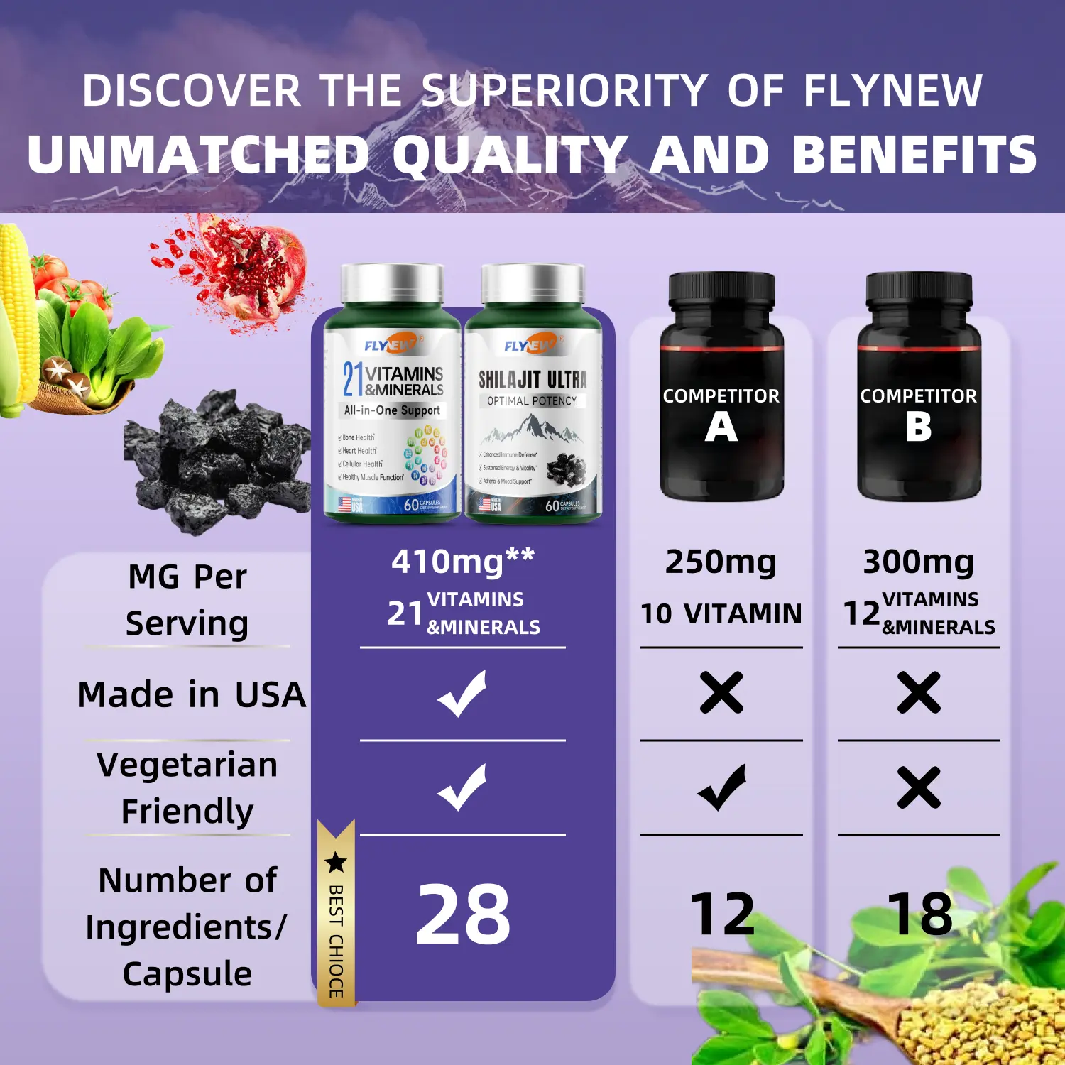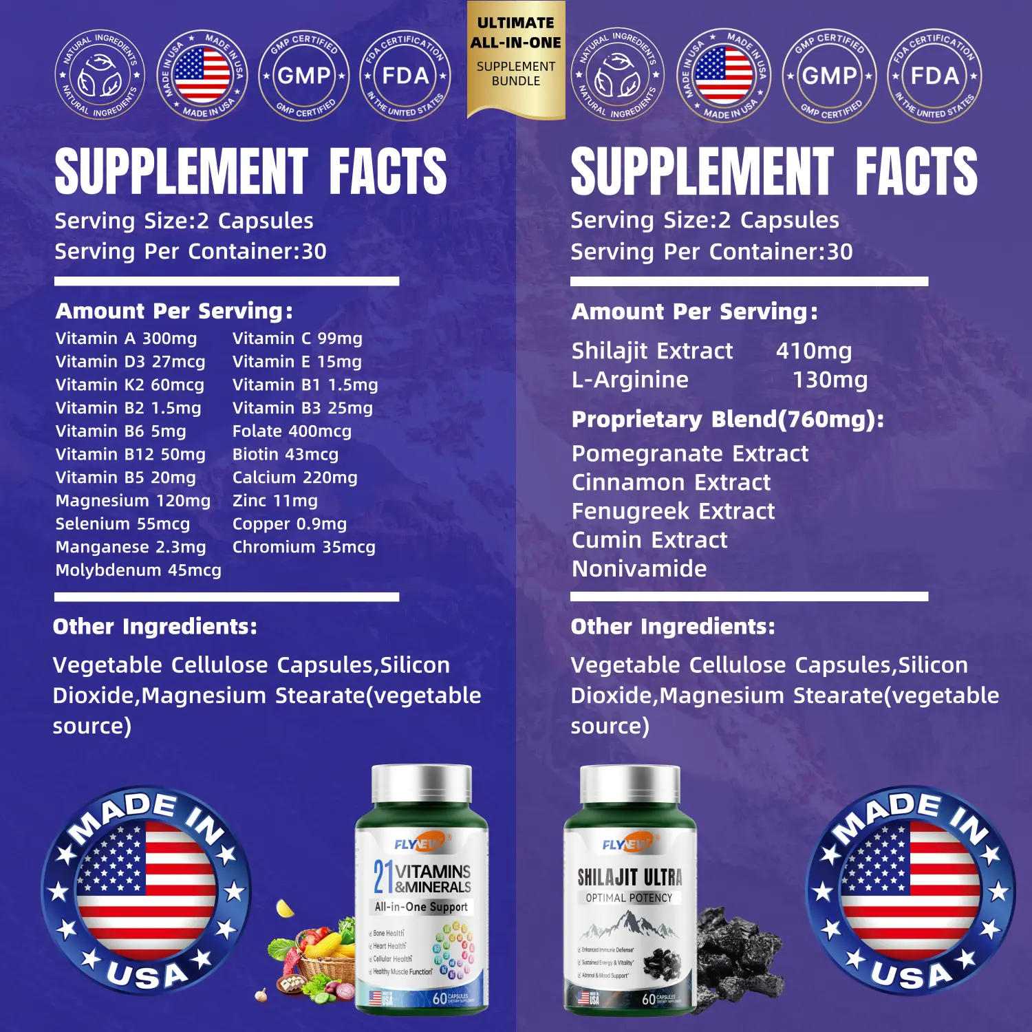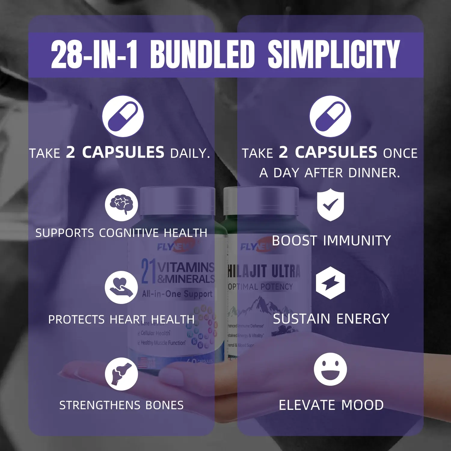 Add Flynew 21 All-in-One Vitamins & Minerals and Shilajit Bundle to your daily routine to enhance your overall well-being naturally!