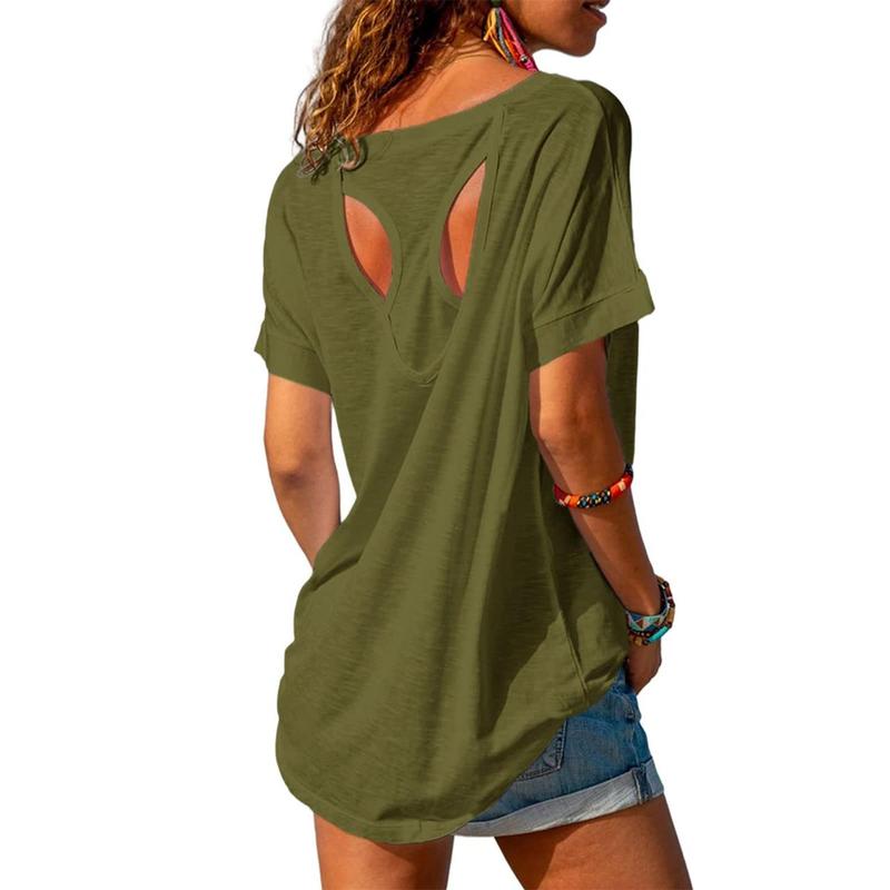 ·Design:Open Back,Crew Neck,Short Sleeves,Solid Color,Loose Fit Shirt Top. A Sexy Backless Shirt,Show More Your Body Charm,Makes You Outstanding On Yoga,Working Out etc.