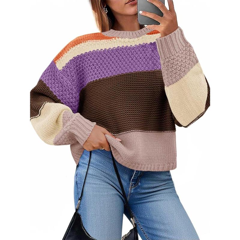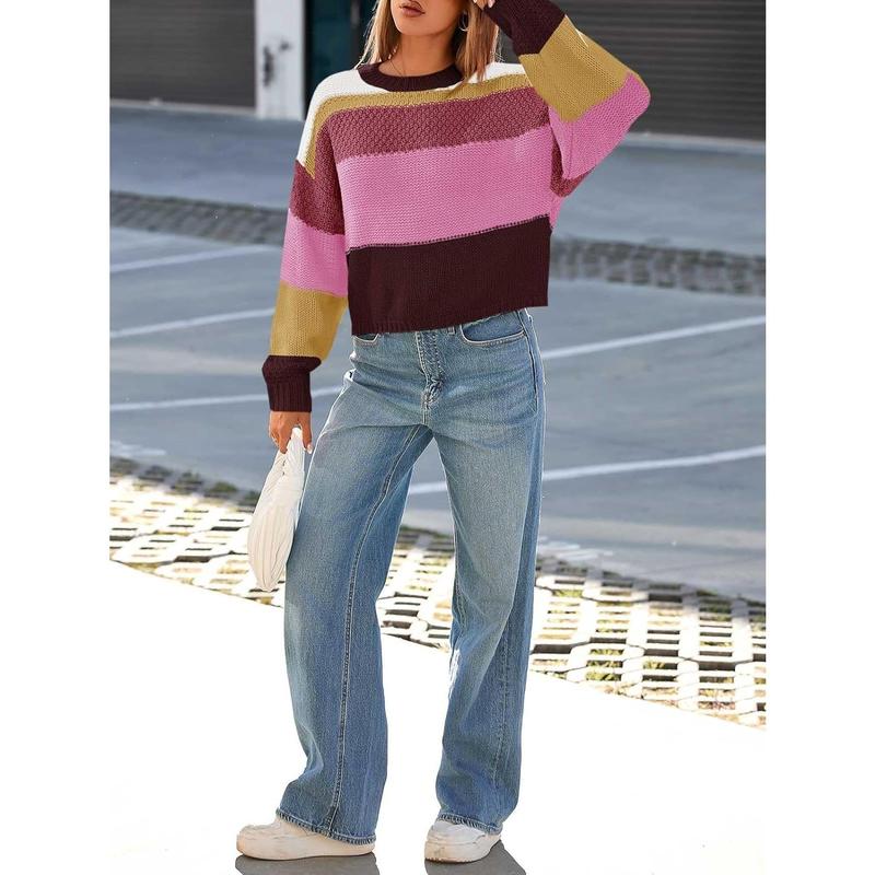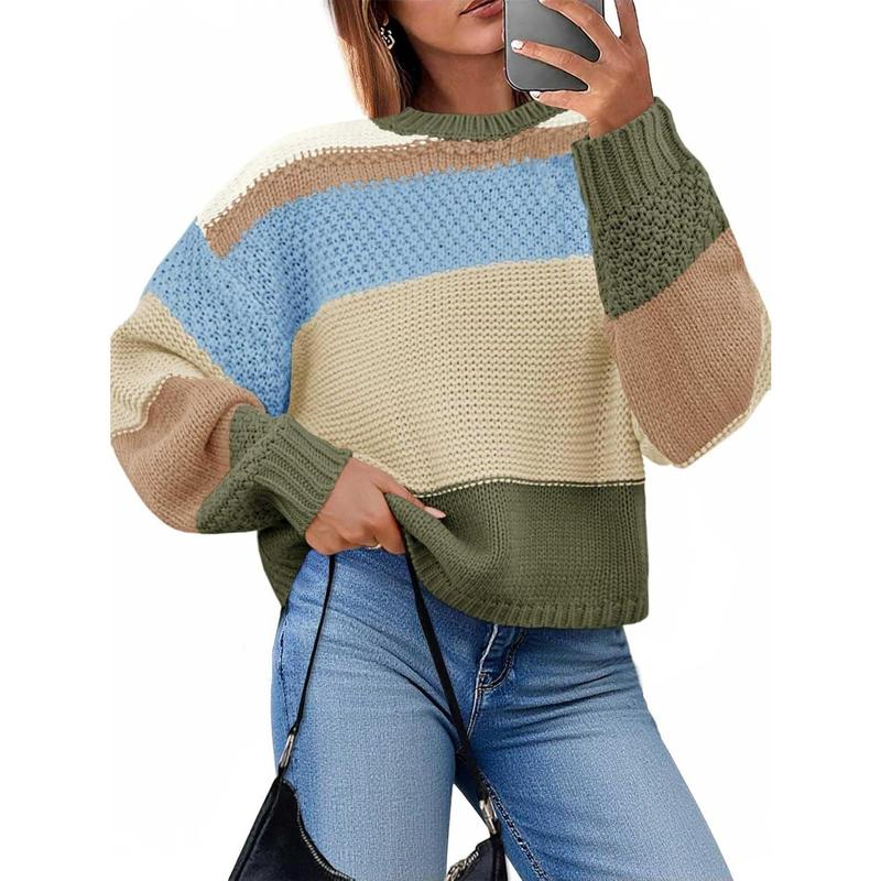 FMEYOA Womens Color Block Cropped Sweaters 2025 Winter Trendy Casual Oversized Y2k Going Out Striped Pullover TopsFMEYOA Womens Color Block Cropped Sweaters 2025 Winter Trendy Casual Oversized Y2k Going Out Striped Pullover Tops