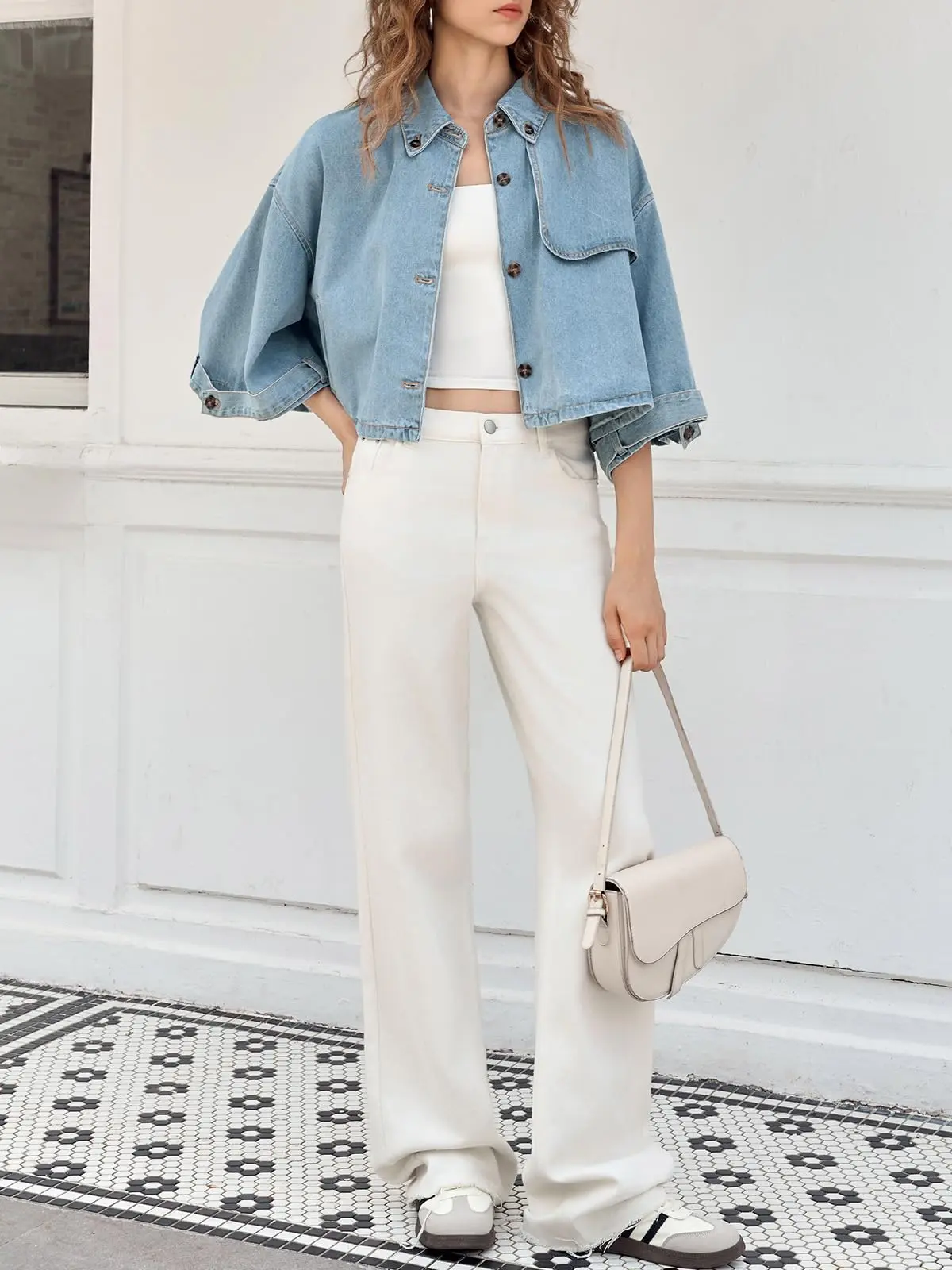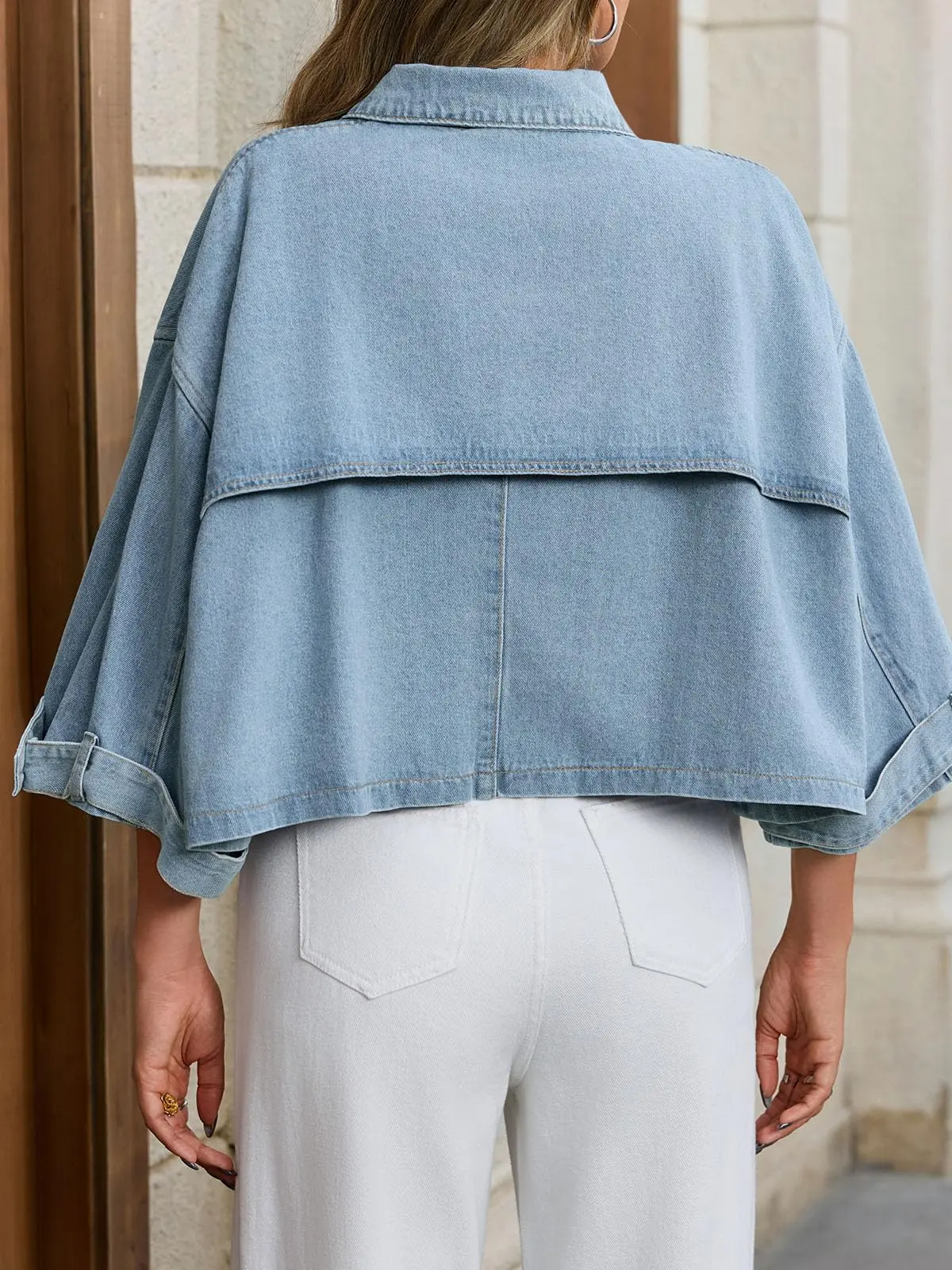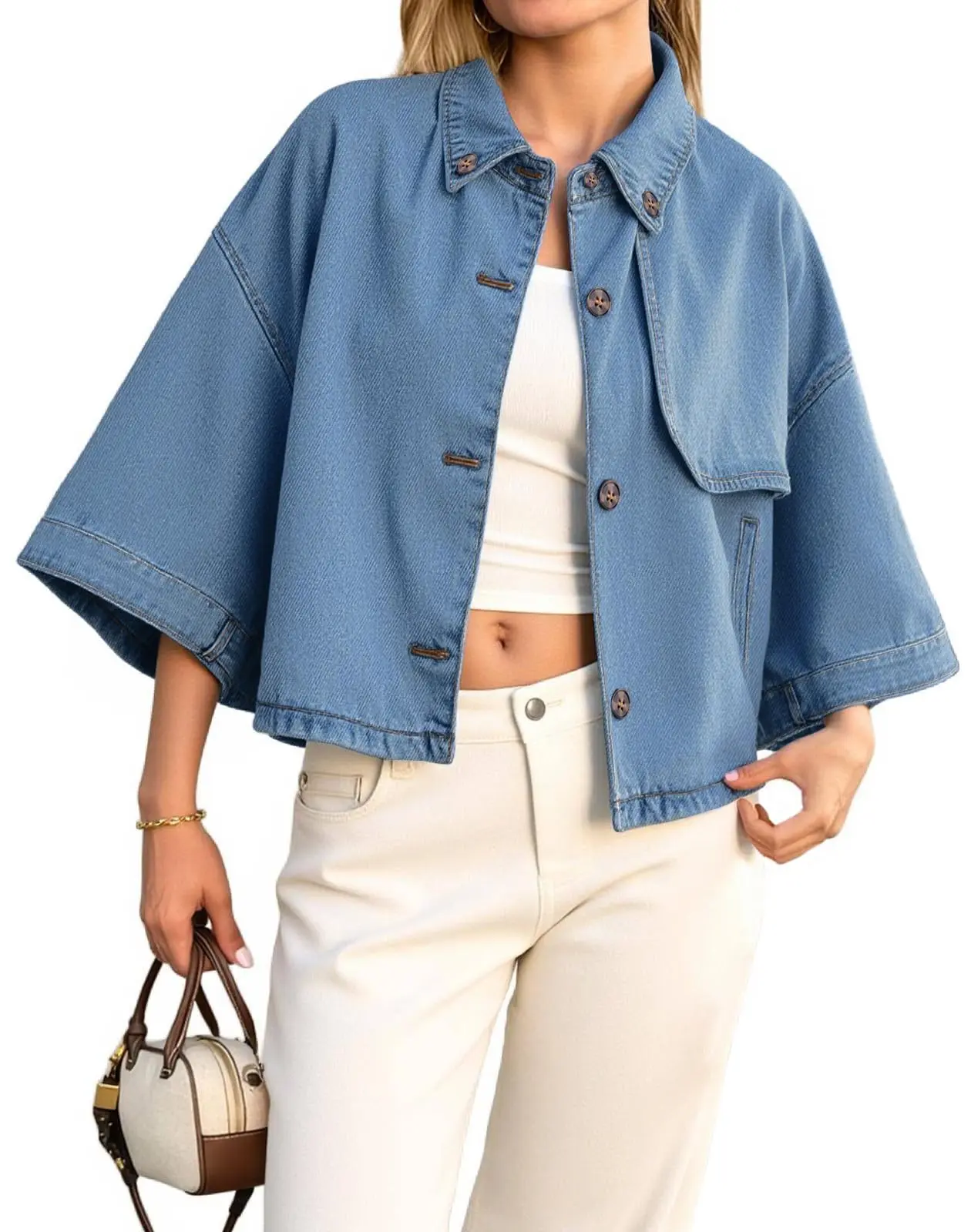 ·Trendy Design: Featuring a stylish collared design and button down front, this basic denim jacket is an ideal crop cape coat that adds a chic touch to your autumn outfits.