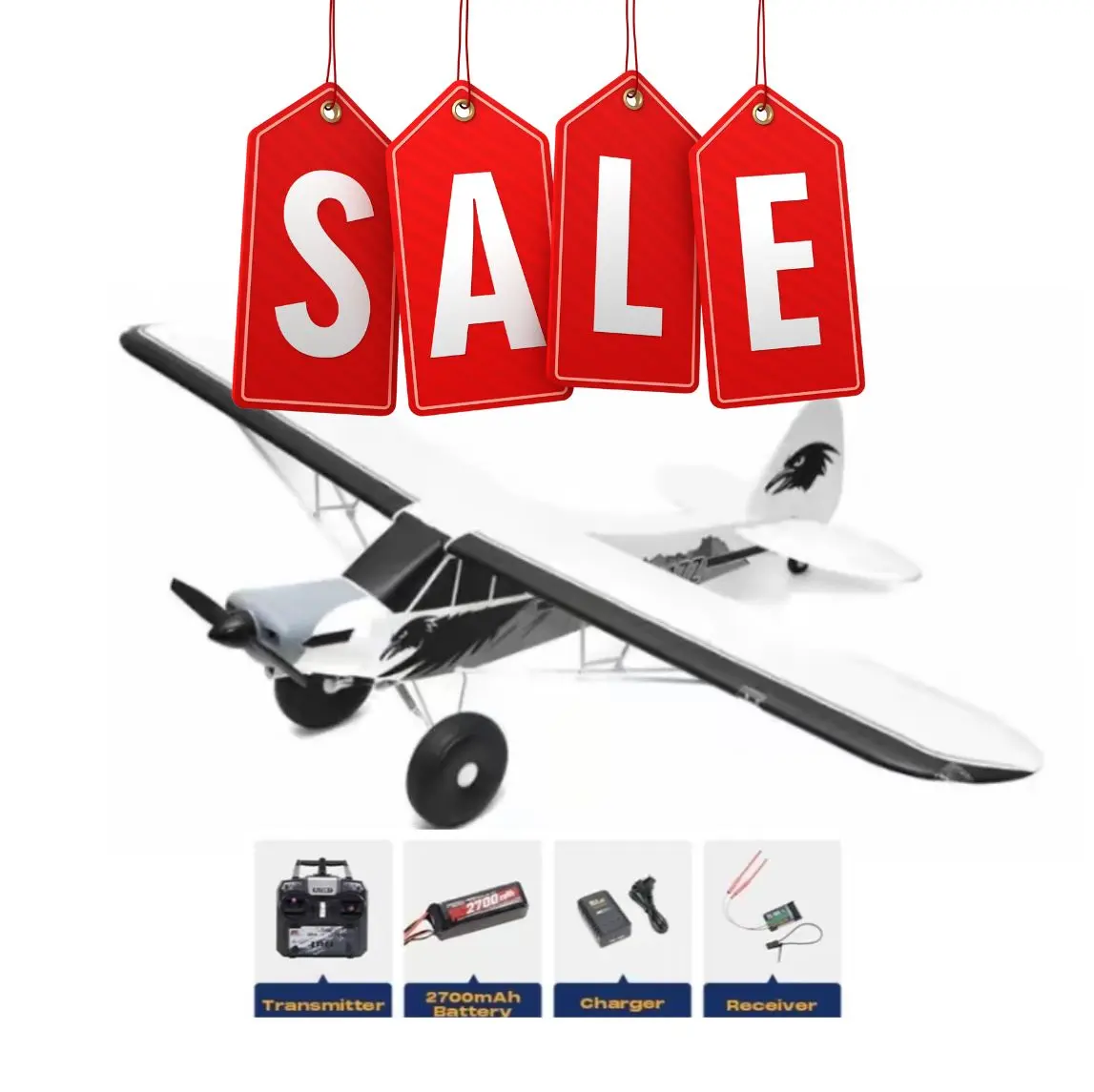 RTF (Ready to Fly) airplanes come with everything you need to fly in the box. A transmitter, receiver, battery, charger, and all other required electronics are included and pre-installed from the factory.