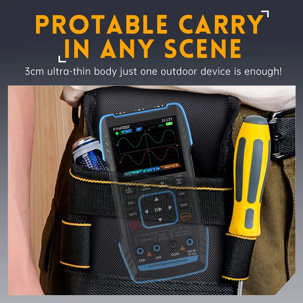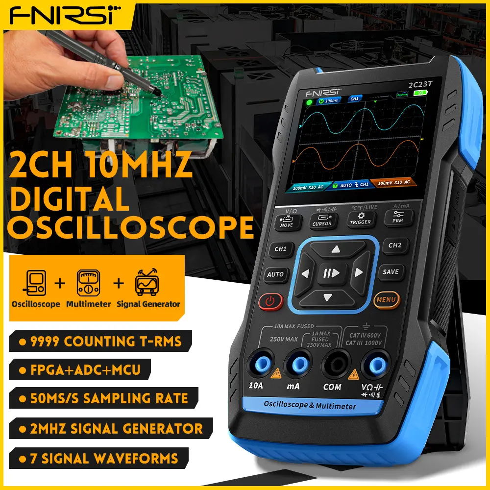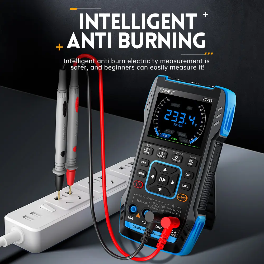✦ Oscilloscope Mode: Dual-channel handheld oscilloscope with 10 MHz bandwidth, 50 MSa/s sampling rate, 32 kb record depth, automatic measurement, max voltage of 400 V, vertical sensitivity 200 mv/div-10 v/div, and waveform storage/export.