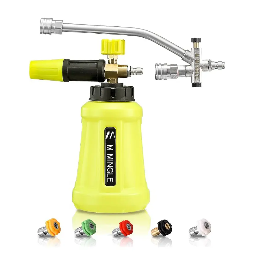 ✨ Thick Power Washer Foam Cannon: This foam cannon boasts a 1-liter capacity and a wide-mouth design. It swiftly generates even foam, ensuring efficient cleaning. The adjustable nozzle provides various spray modes, delivering superior results. Perfect for thorough cleaning tasks.