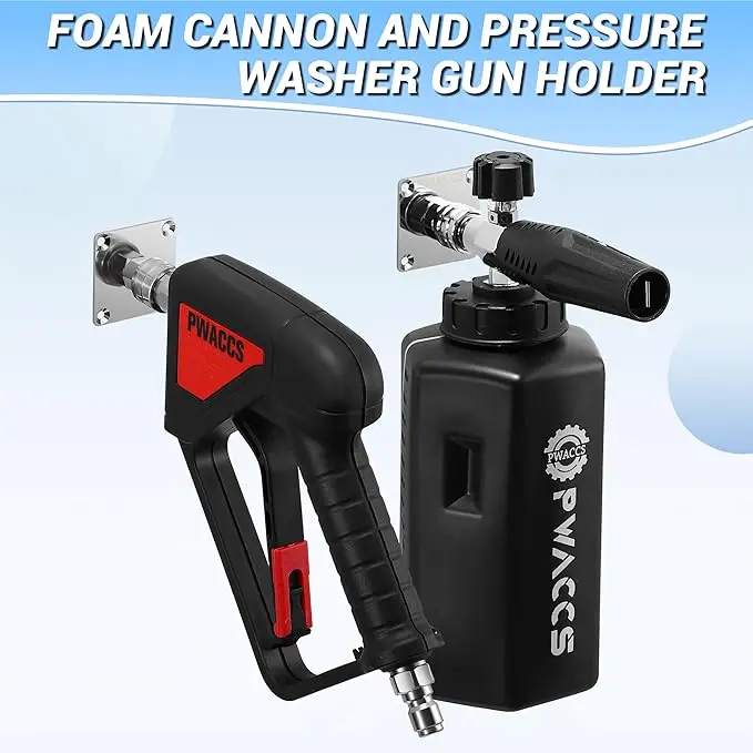·Superior Compatibility - Designed to accommodate various car wash foam handheld , the pressure washer handheld mount is compatible with most standard 1/4" quick connects. Adding versatility to your cleaning setup. The package includes four counts holders to hang two power washer handheld and two foam canons.