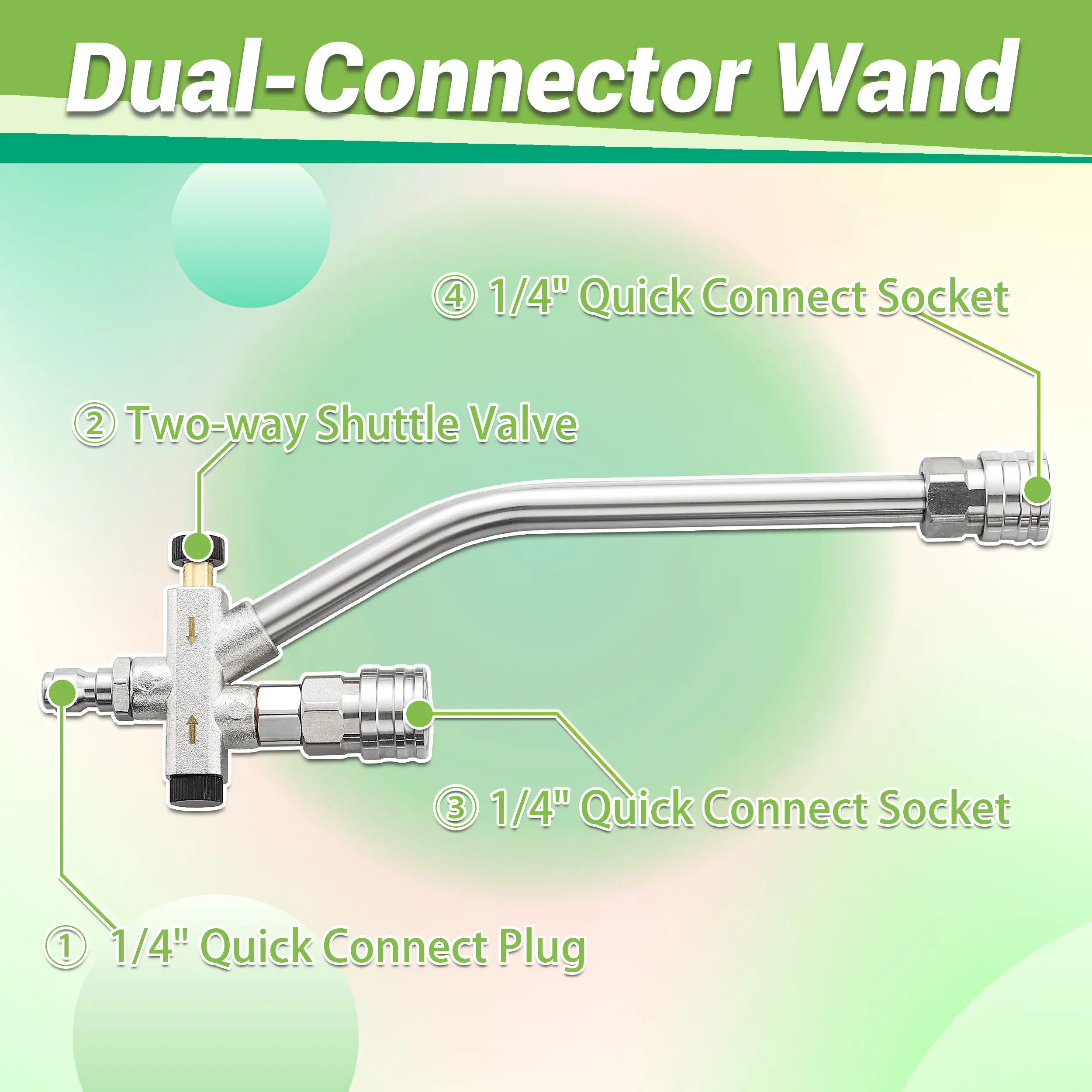 ¡Our dual lance pressure washer wand features a unique design that allows you to switch effortlessly between the power washer nozzle and the snow foam cannon.