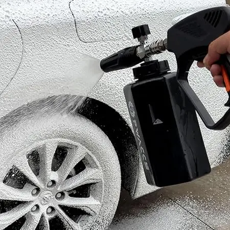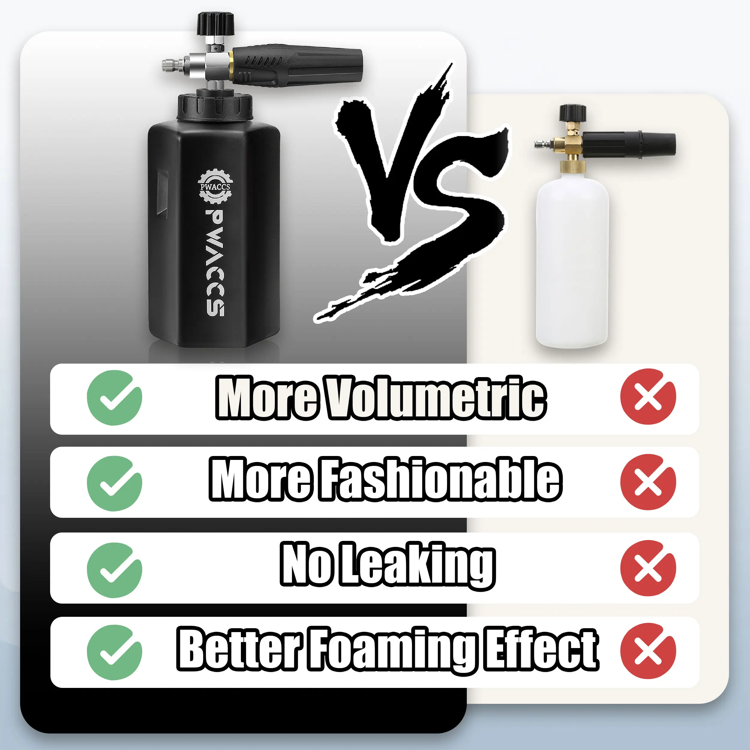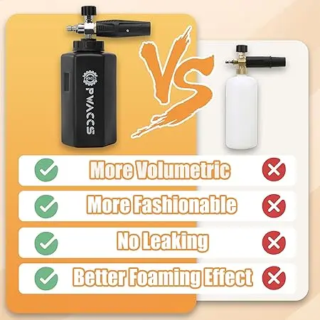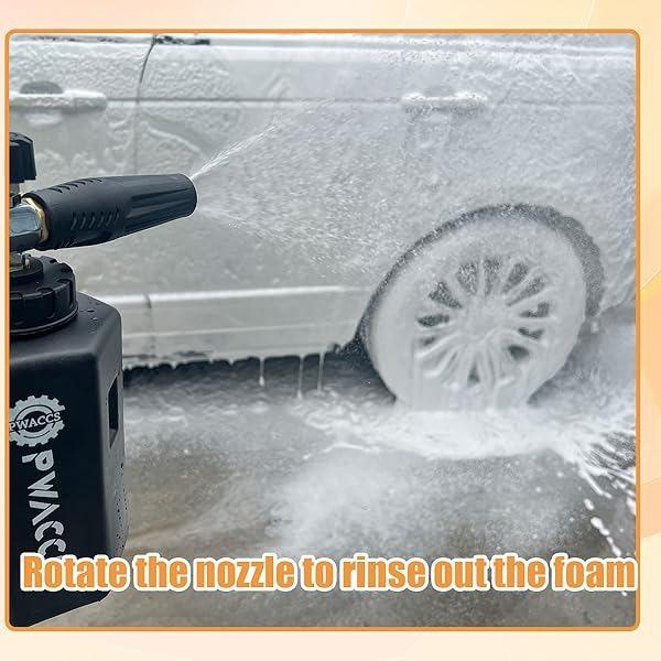·DENSE & THICK FOAM - The heavy-duty foam core of the pressure washer foam cannon creates a dense and thick, snow-like foam that clings to the car's surface, resulting in thorough and effective cleaning in all areas.