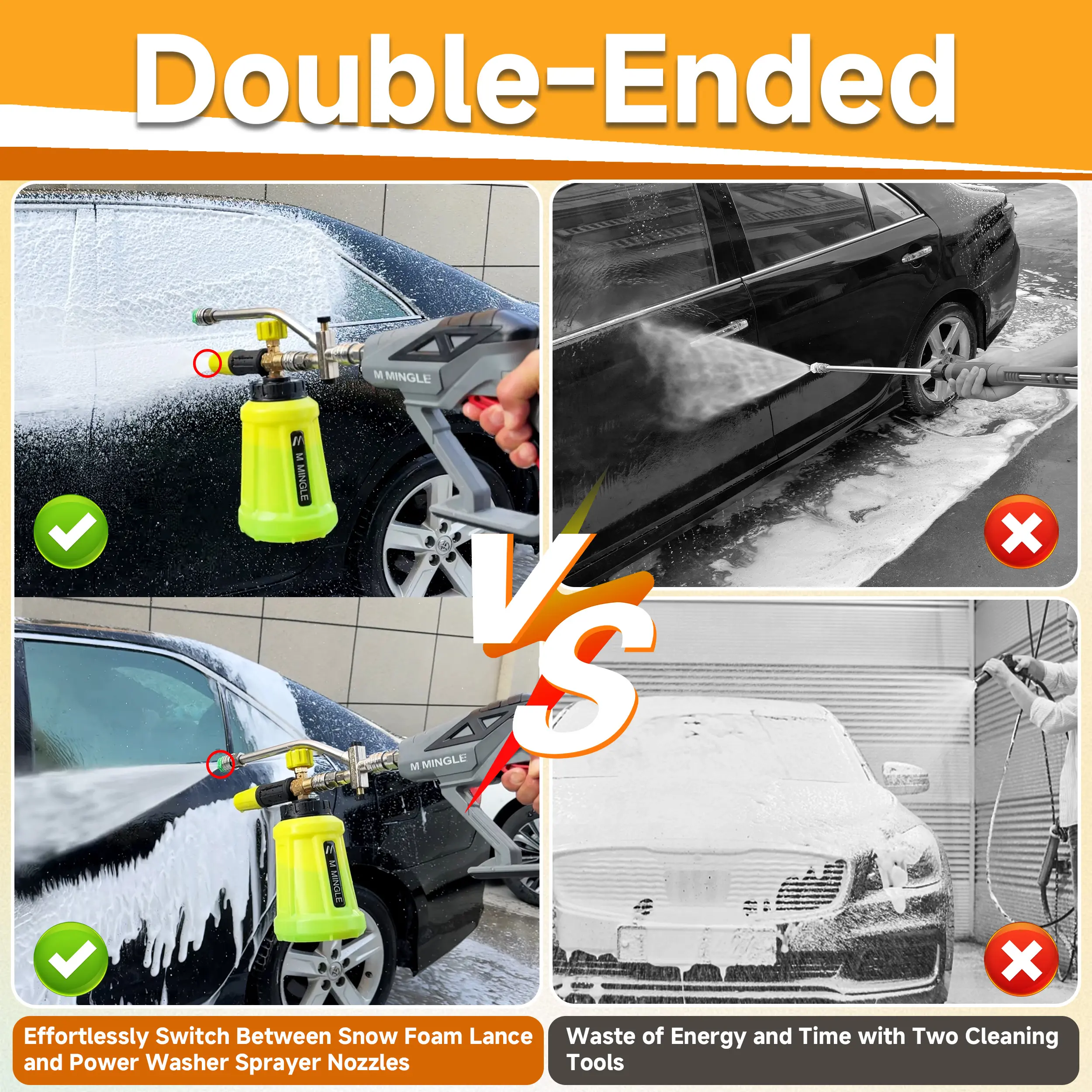 Versatile Foam Cannon with Dual-Mode Spray Tool: Equipped with a unique dual-head adapter and two-way valve, it facilitates smooth transitions between foam and water flow without frequent nozzle changes, saving you time and labor.