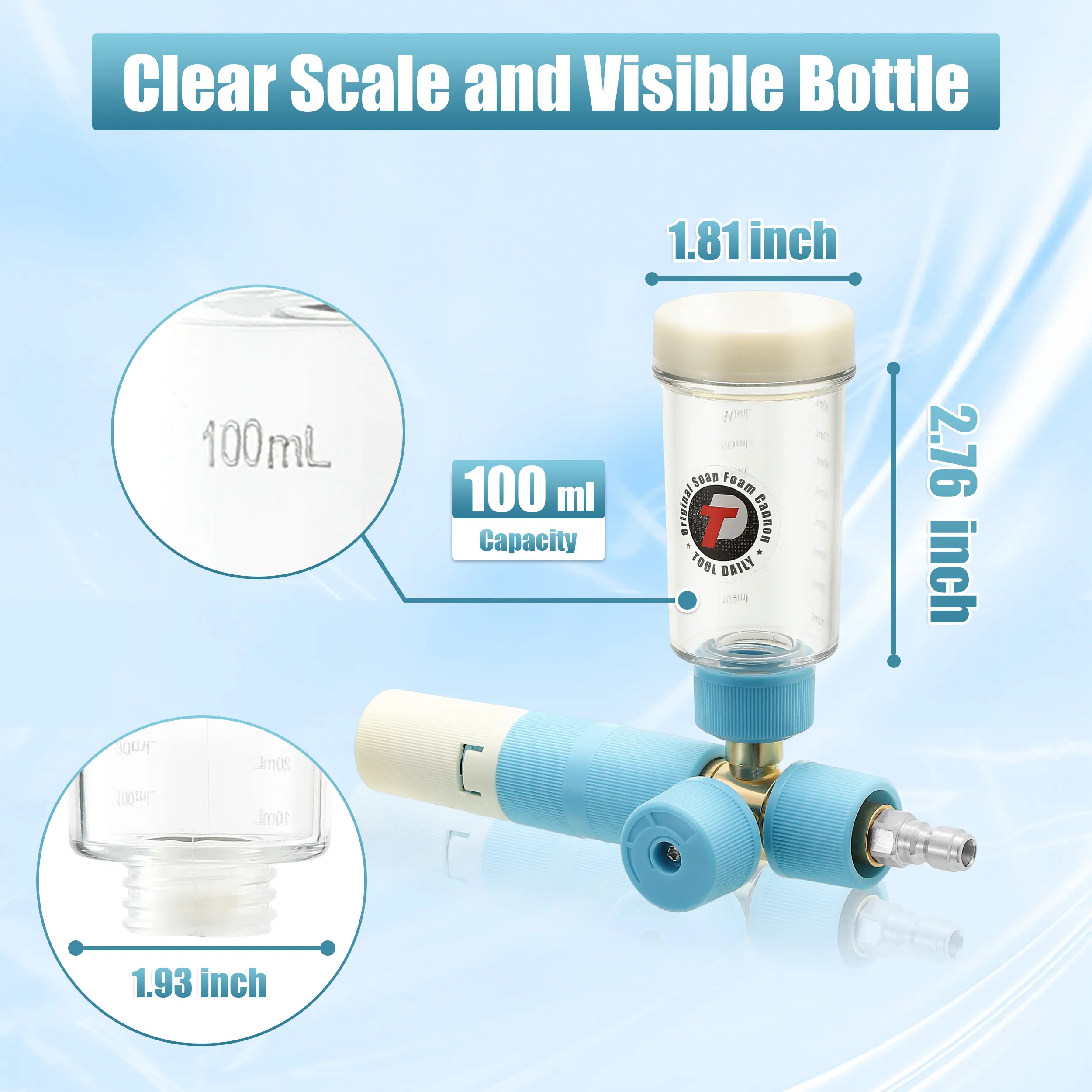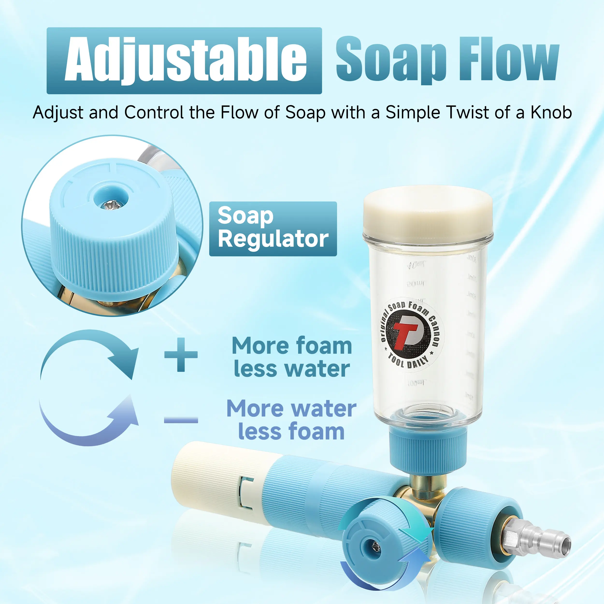 🔧 Adjustable Angle & Flow: Control the spray pattern with the fully adjustable nozzle. The side knob lets you adjust the soap amount. Turn clockwise for more foam, less water. The 100 ml bottle is lightweight and easy to use. Max working pressure: 3600 PSI.