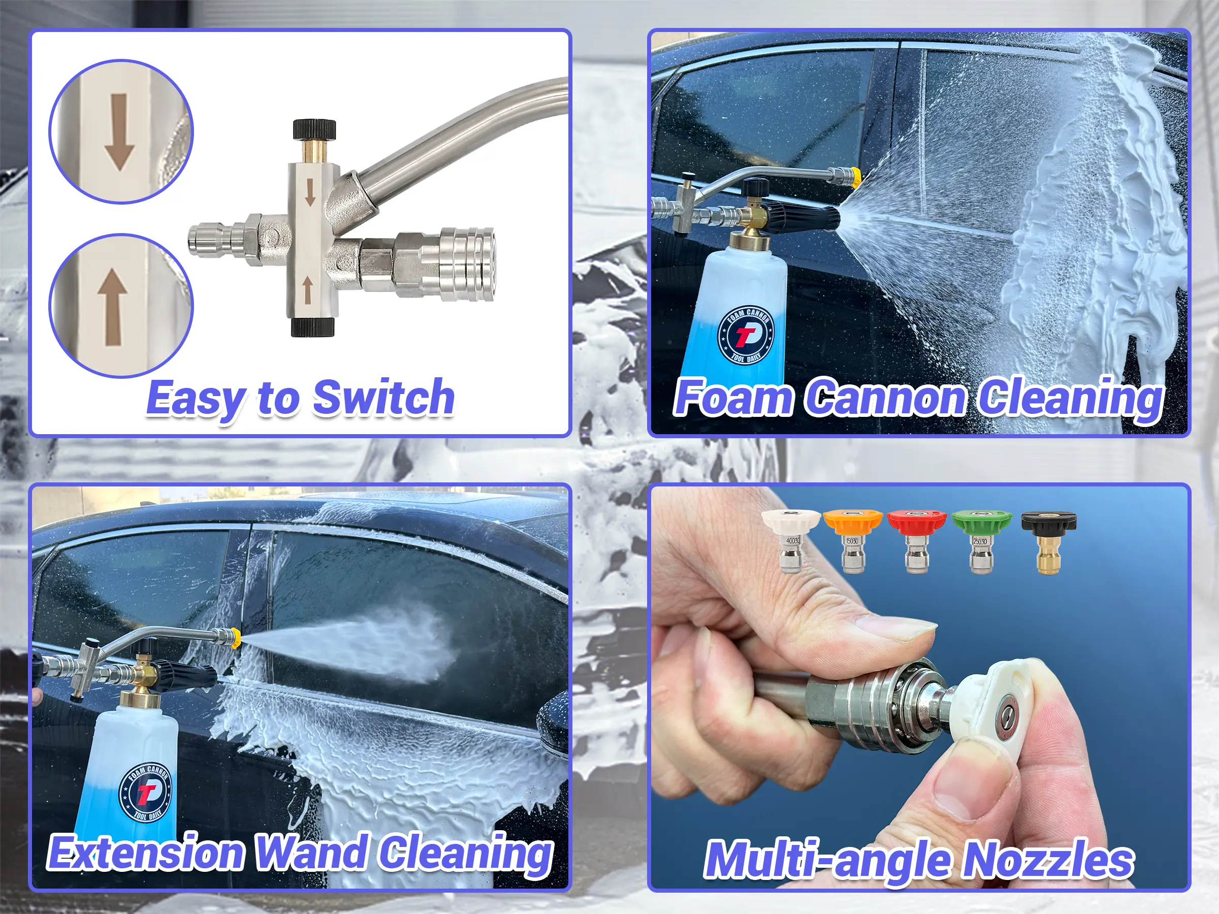 ·Experience a new dimension of cleanliness with our innovative foam blaster dual-connector accessory.