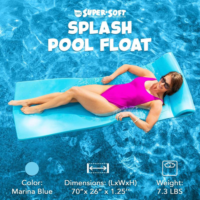 Relax in style with the TRC Recreation Splash Lounger Raft Pool Float. Made from durable 1.25-inch thick foam, this float is perfect for lounging in the pool or lake. Its smooth vinyl coating prevents water absorption, and the roll pillow supports your head and neck. Enjoy worry-free comfort and buoyancy with this long-lasting, low-maintenance float.