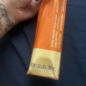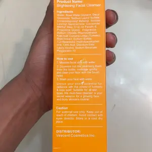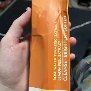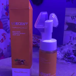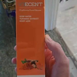 Veecent is the real tumeric facial cleanser, it’s supposed to look orange, it made my skin clearer than the other one did, shipping only took 3-4 days. Buy it