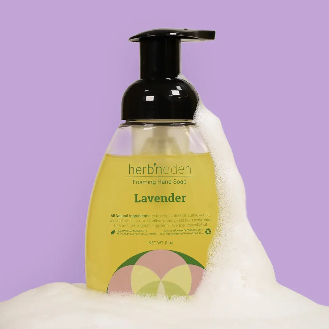 Feel the difference with the ALL NEW herb'neden Lavender Foaming Hand Soap. We couldn't drop this exciting product without having one of our most popular scents. We've blended cleansing and nourishing all-natural oils, like olive and castor, with therapeutic-grade essential oils for a wholistic hand wash that can be used daily.