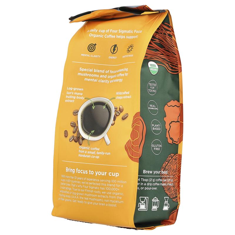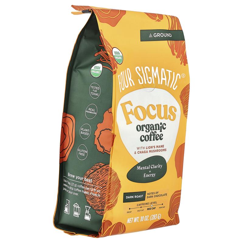 Four Sigmatic Focus, Organic Coffee with Lion's Mane & Chaga Mushrooms, Ground, Dark Roast, 10 oz (283 g)