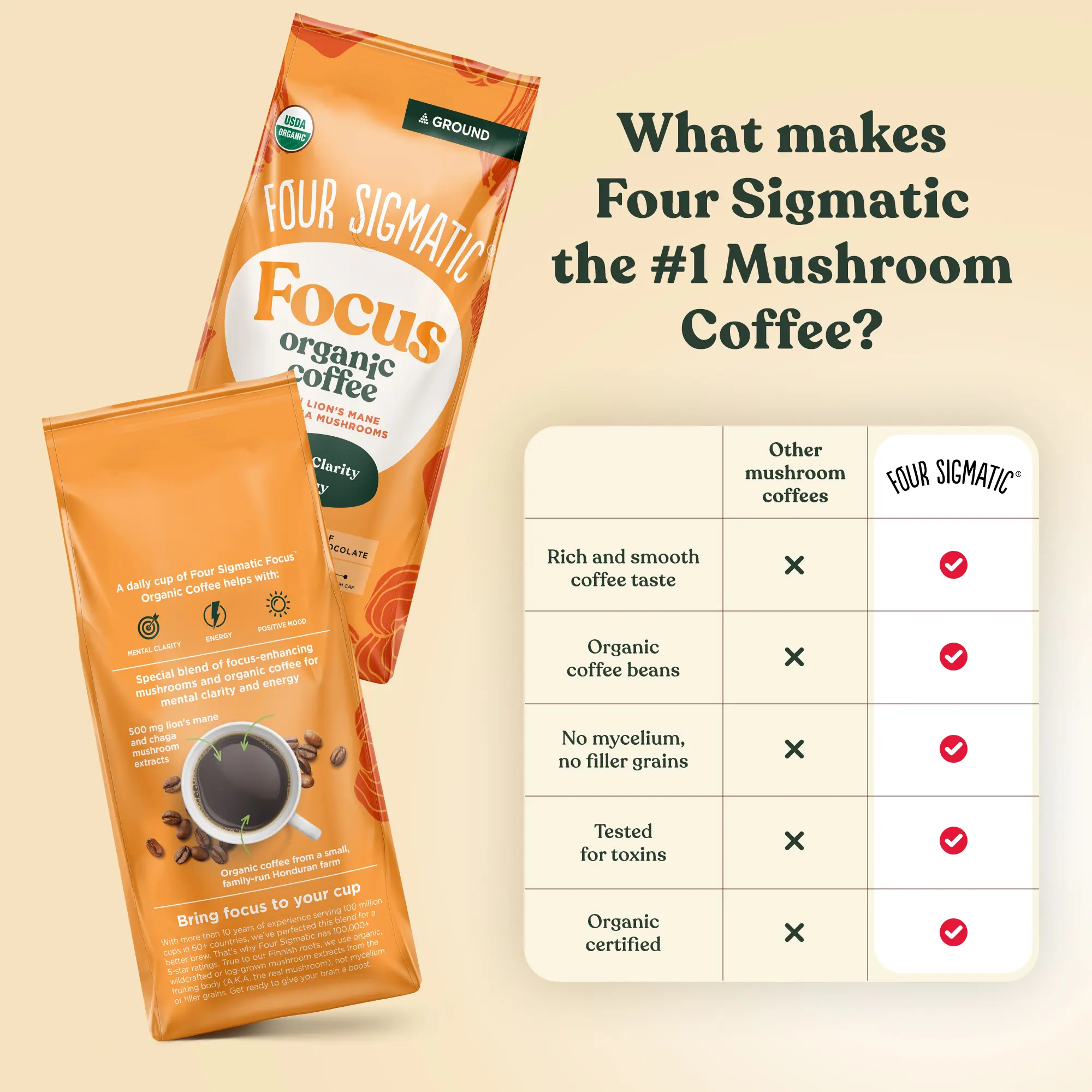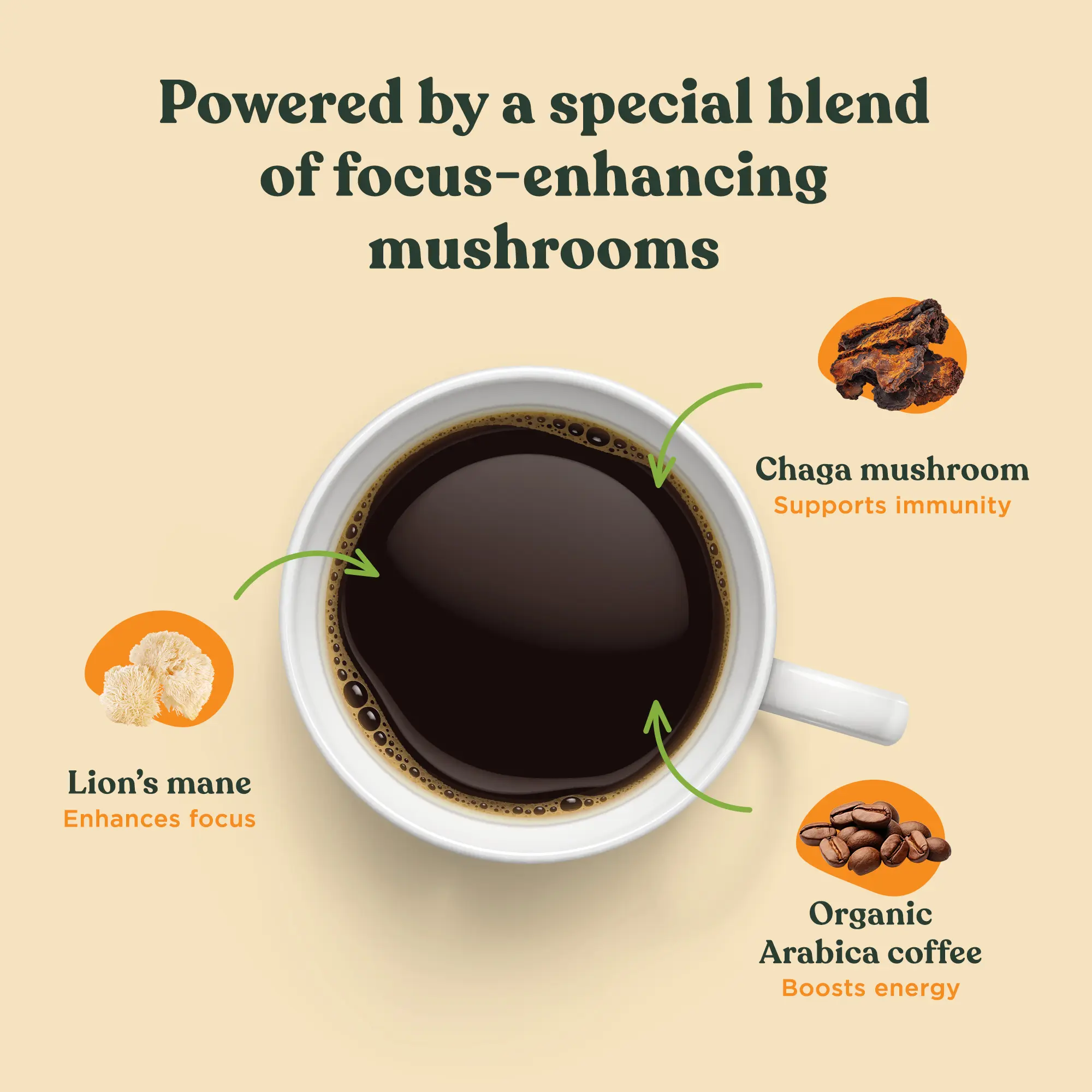 We love coffee, but it has its downsides. We took 250mg of organic Lion’s Mane (per serving), a functional, nootropic mushroom, that has been used around the world for centuries for increased focus and creativity, and combined it with our delectable, organic fair trade coffee.