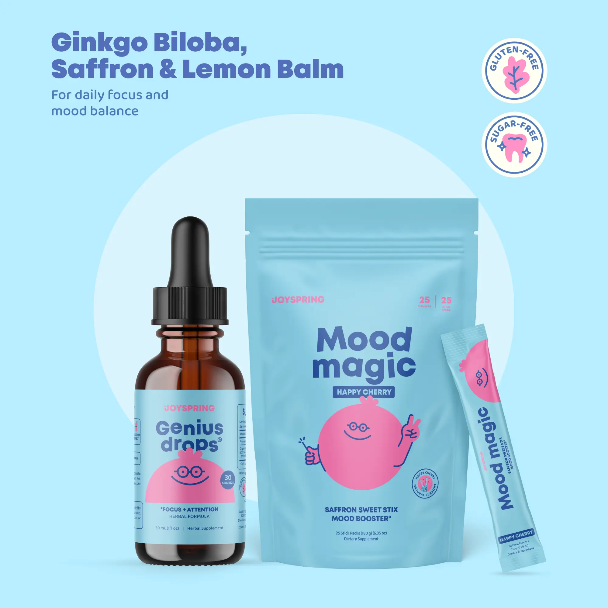 Mood Magic Pixie Stick (25 sticks) – A saffron-based formula designed to uplift mood, ease daily stress, and support emotional well-being.