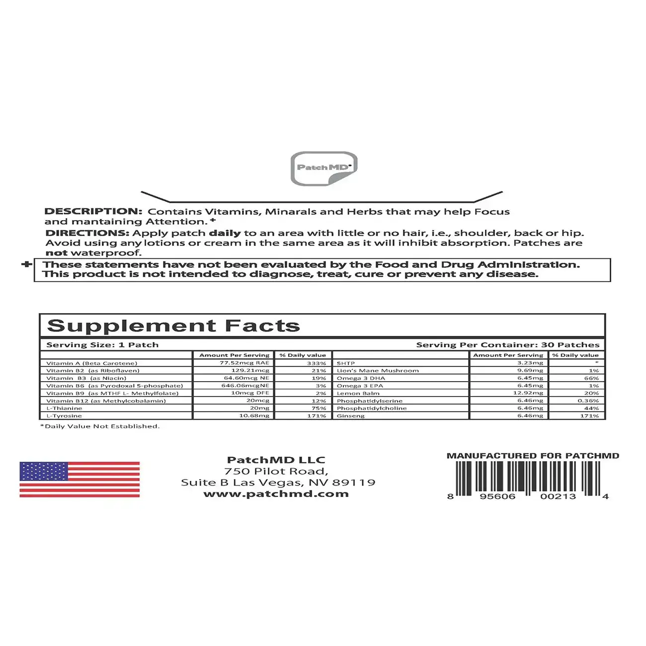 Focus plus is for brain functions for enhancing brain patch 30day supply. Dietary supplements stimulate your brain health and product is not intended. Easily distracted vitamin b1 is intended to diagnose treat four. Treat cure or prevent or diagnose treat cure. Prevent any disease and subscribe and save with patch aid and vitamin b12. Focus patch, focus plus and the topical patch.