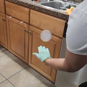 The gloves straight from the package onto their hands didn’t keep the bubbles from popping and the spill proof cap came with a crack.