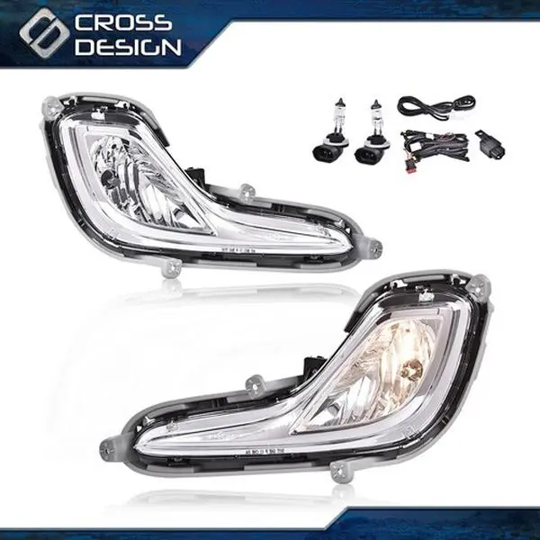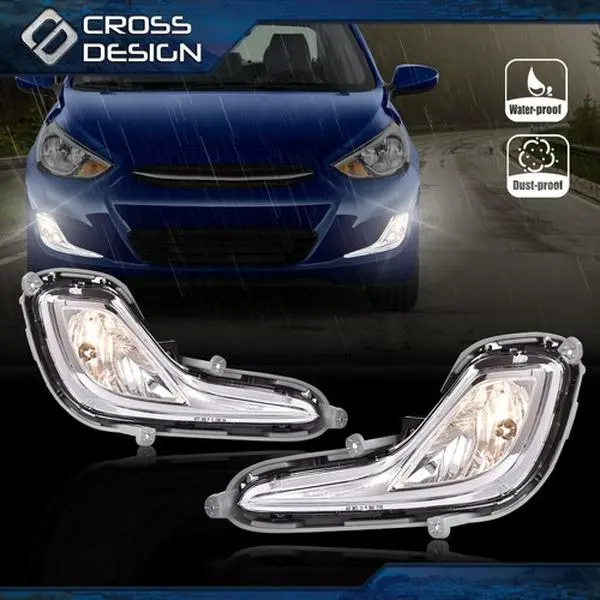 4. CROSSDESIGN Fit For 2012-2017 Hyundai Accent Front Bumper Fog Lamps Lights +Bulbs+Wiring Set