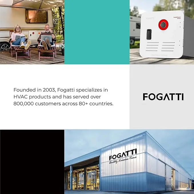 ·Easy Installation: Water connection: 1/2" NPT; Electrical requirements: 120 Volts (AC), 1440 watts under voltage;With plug connection(Power cord: 800mm); Maximum water pressure: 150 PSI; Recommended circuit breaker specification: 15 AMPS, ensuring complete electrical safety. FOGATTI provides a 6-year limited warranty for the tank and a 1-year warranty for components, giving you peace of mind.