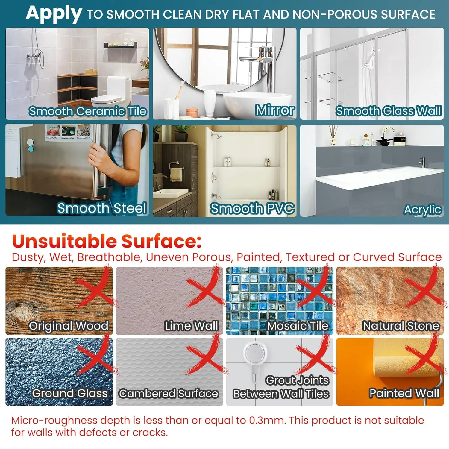 Very in-expensive product that won’t stay on the wall. Which is cultured smooth marble. Has fallen off now 3 times. Magnification is minimal. I’m returning product. Don’t recommend.