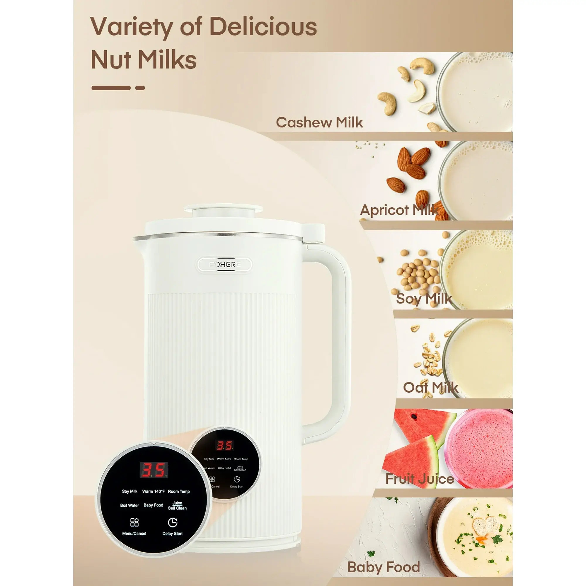 🌟 FOHERE 8 in 1 Nut Milk Maker Machine 🌟