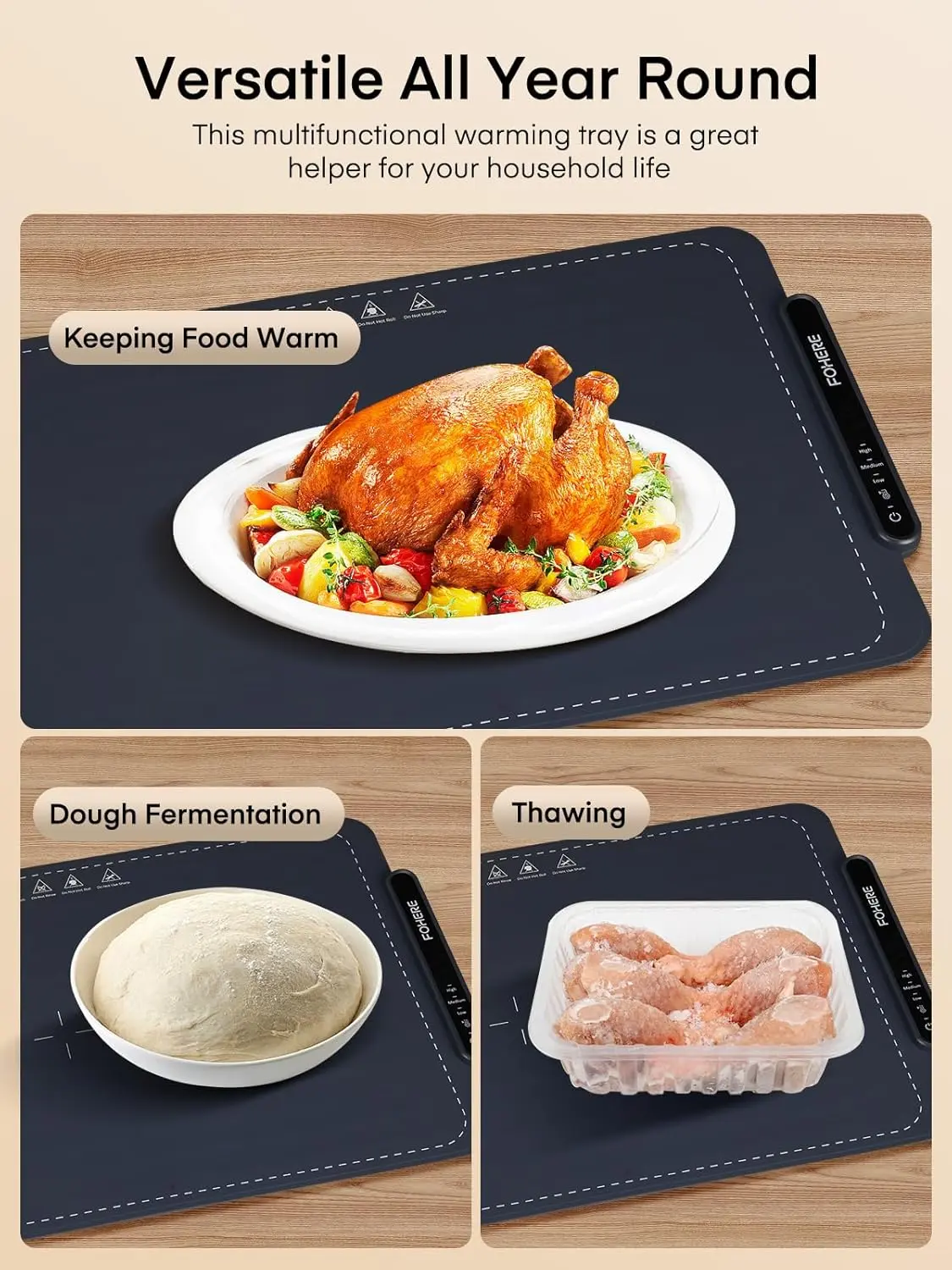 ·Versatile for Year-Round Use: This foldable food heating mat is an essential addition to every kitchen. Keep your meals warm for everyday dining, ferment dough, thaw frozen foods, and maintain the ideal temperature for family dinners, gatherings, events, and Thanksgiving Day and Christmas Celebrations.