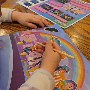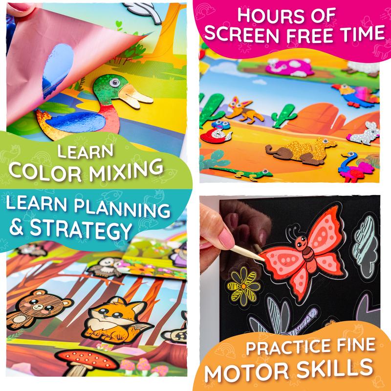 Of how they got their Start . The kit has these beautiful scenes to put your stickers on and they’re Two-sided two different kind of stickers, googly eyes everything you possibly could need to make cool projects. The kids will love them the parents