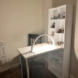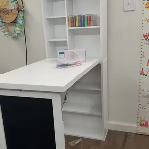 ·- 2-in-1 design combines a folding desk with an open storage shelf, providing ample storage space for books and stationery essentials. - Made of particleboard and solid metal hardware for stability and easy cleaning