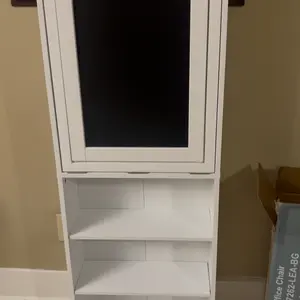 ·- Upper Shelf Dimensions: 19" W x 5.75" D x 8.75" H (top shelf), 7" W x 5.75" D x 7" H (left shlef), 11.25" W x 5.75" D x 10.75" H (right shelf)
