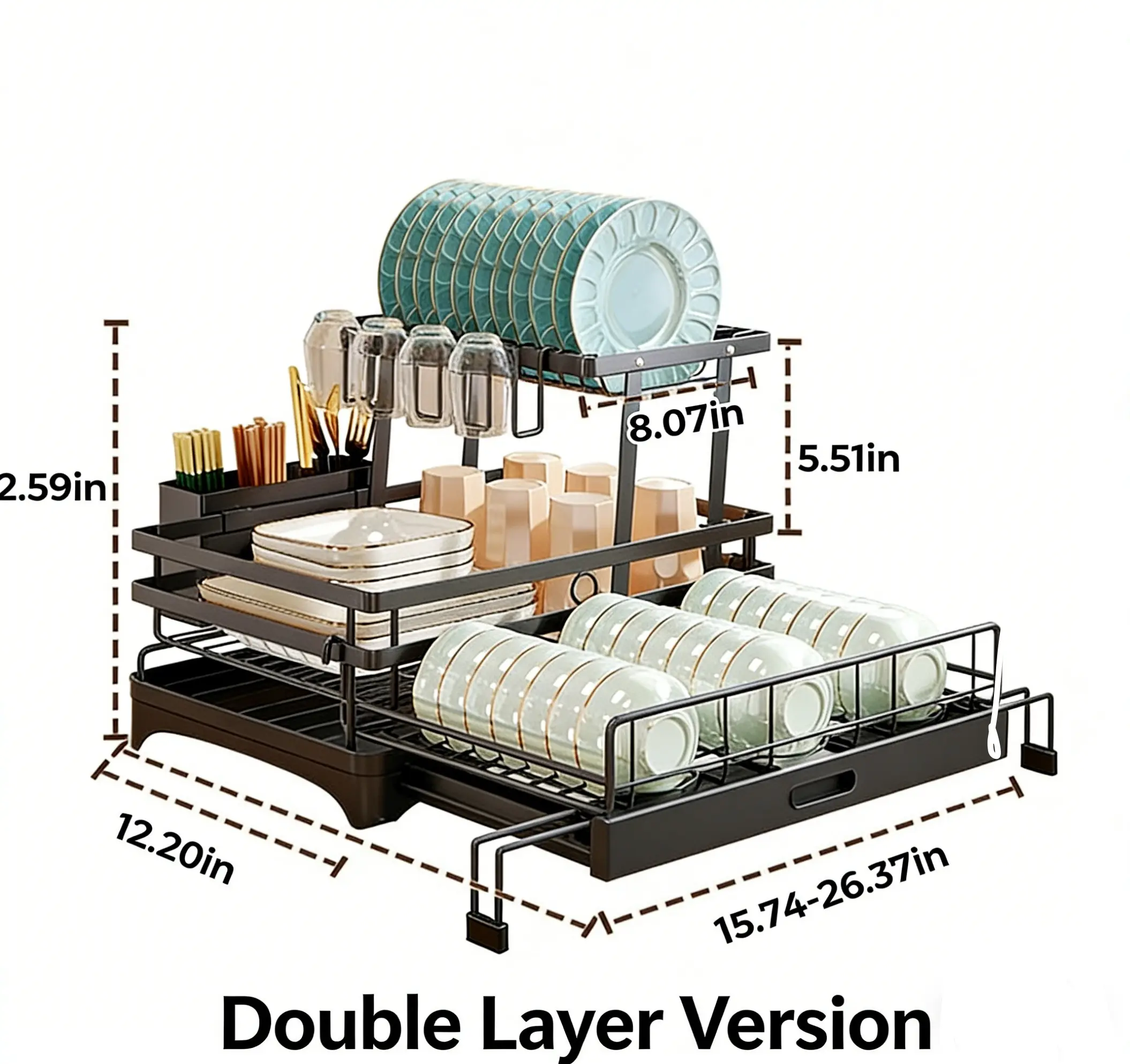 The bottom shelf can be extended from 15.7 inches to 20.6 inches, perfectly fitting single/double sinks of different sizes. No need to worry about mismatched sink dimensions! It also works great as a countertop rack, saving you valuable kitchen space.