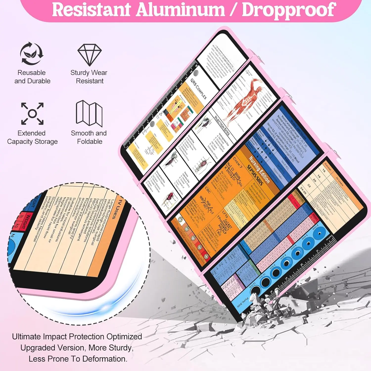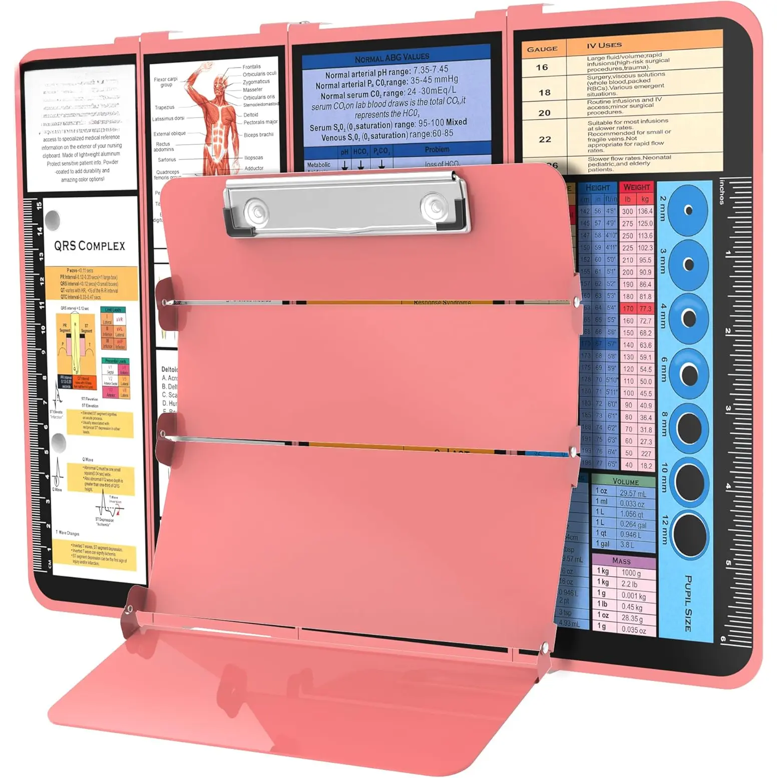 Built-In Cheat Sheets:Our 4 Layers Pocket Size Foldable Clipboards Cheat Charts On The Backside Of The Clipboard Are Specialized Customization, Made Of High-Quality PVC Material And Featured With A Color-Coded, Water-Resistant, Sturdy And Durable, Quickly Access Vital References Includes :Vital Signs, ABG, QRS Complex , BMI Weight Status!
