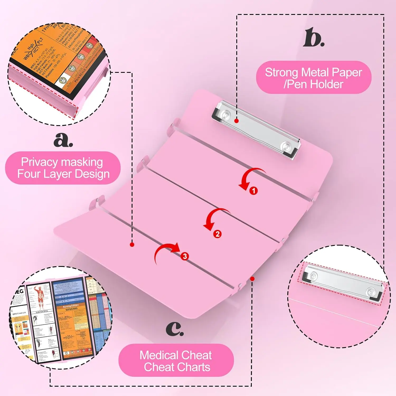 Clipboard Foldable-4 Layers  Nurse Foldable Clipboard   Edition Cheat Sheets,  Pocket Size Pen Clip Pocket Clipboard for  Students School and Doctors-