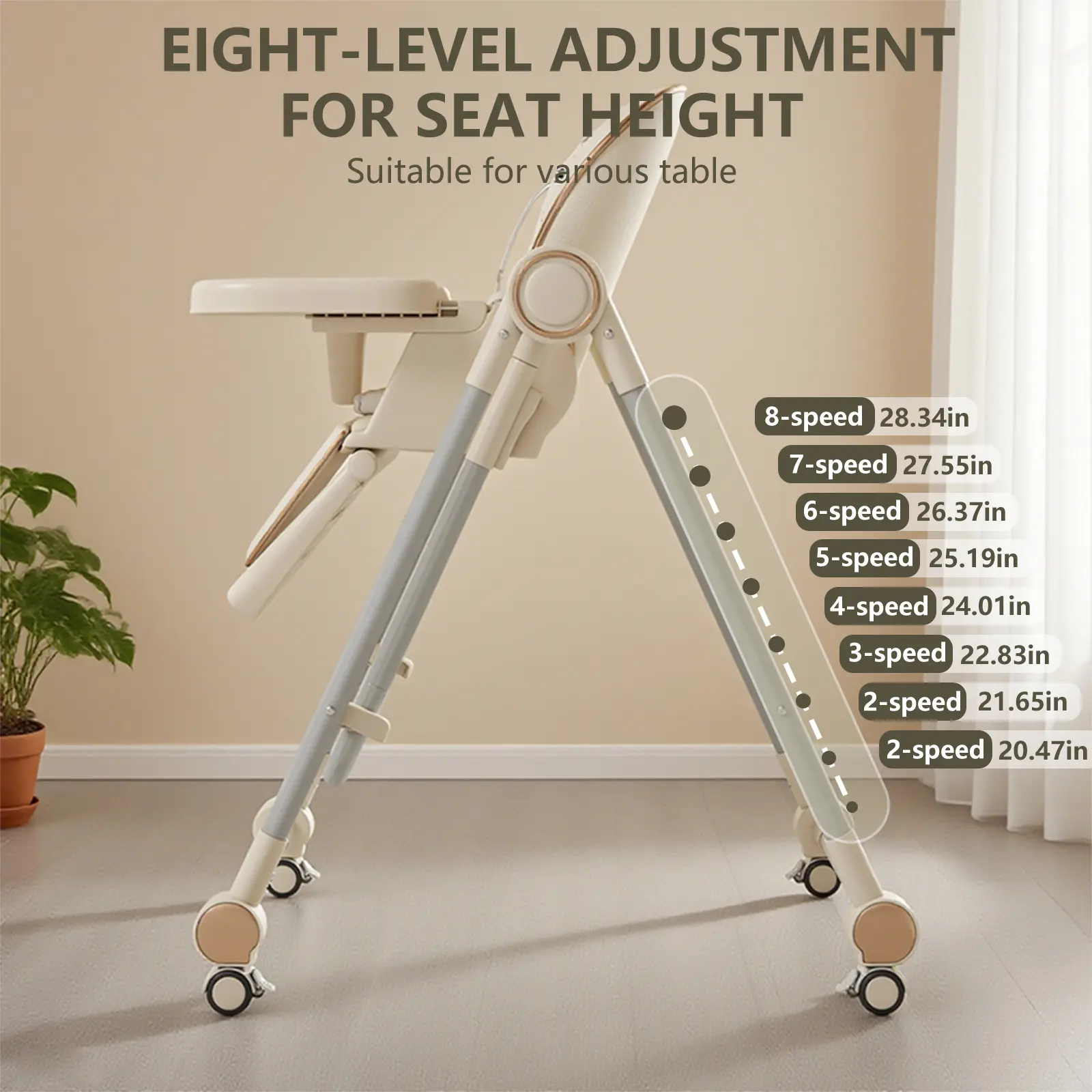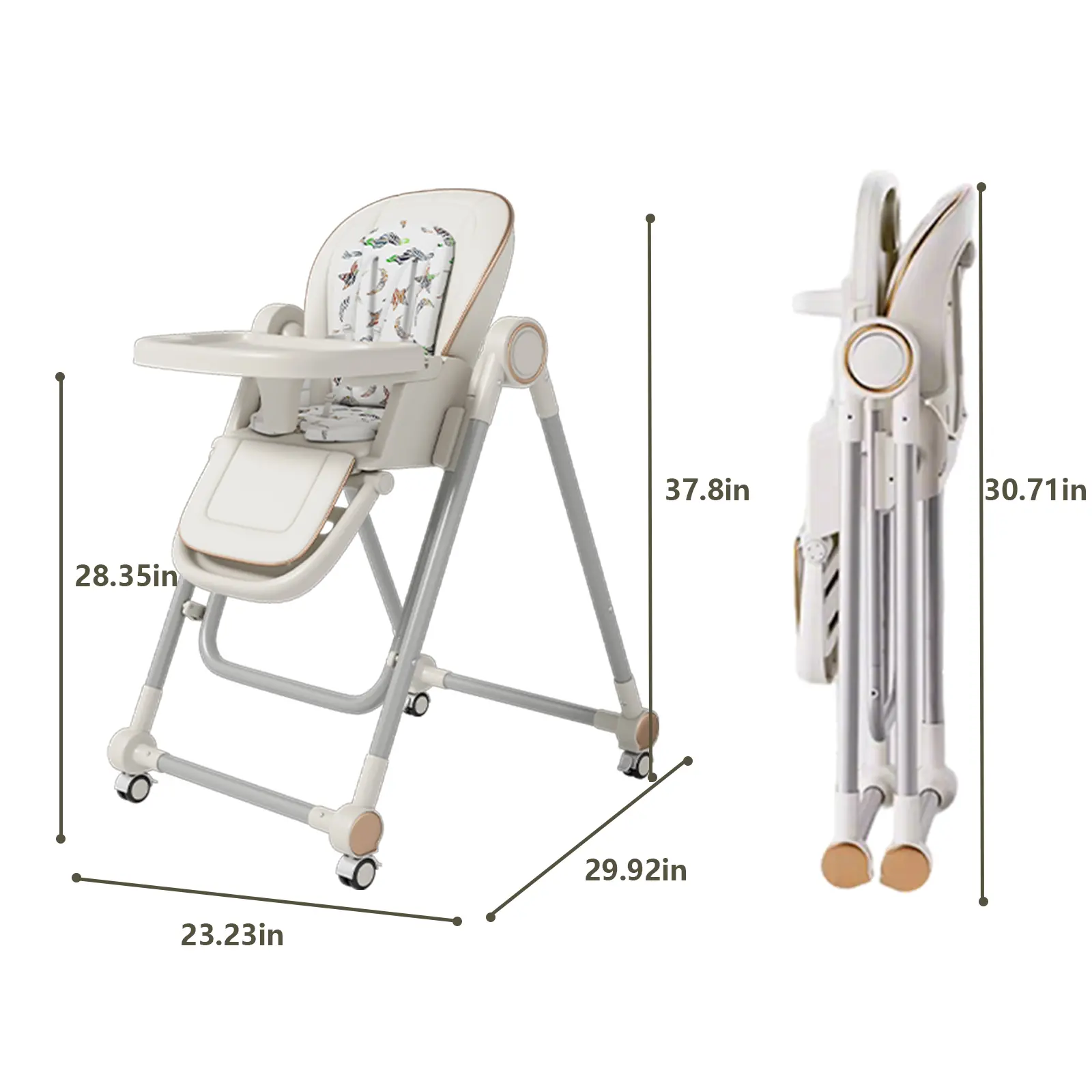 Easily fold this high chair for compact storage or transport. Its ingenious foldable feature ensures it's ideal for homes with space constraints or families traveling. You can store it effortlessly without compromising on convenience.