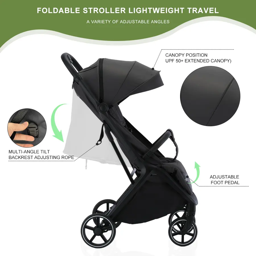 5. Lightweight Baby Stroller, Widened Sunshade with Zipper, Foldable Stroller Infant, One-touch Collection, Adjustable Backrest, Breathable Mesh, Easy to Carry, Suitable for Travel