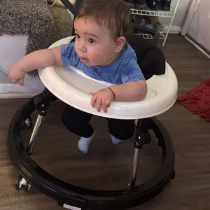·[Strong and stable material]: This baby walker is made of environmentally friendly PP plastic, and the frame is thickened aluminum tube, which has good load-bearing ability. At the same time, the stable four-corner support structure and the large chassis design make the center of gravity more stable, which can prevent rollover problems. So it's perfect for babies who are ready to explore walking.